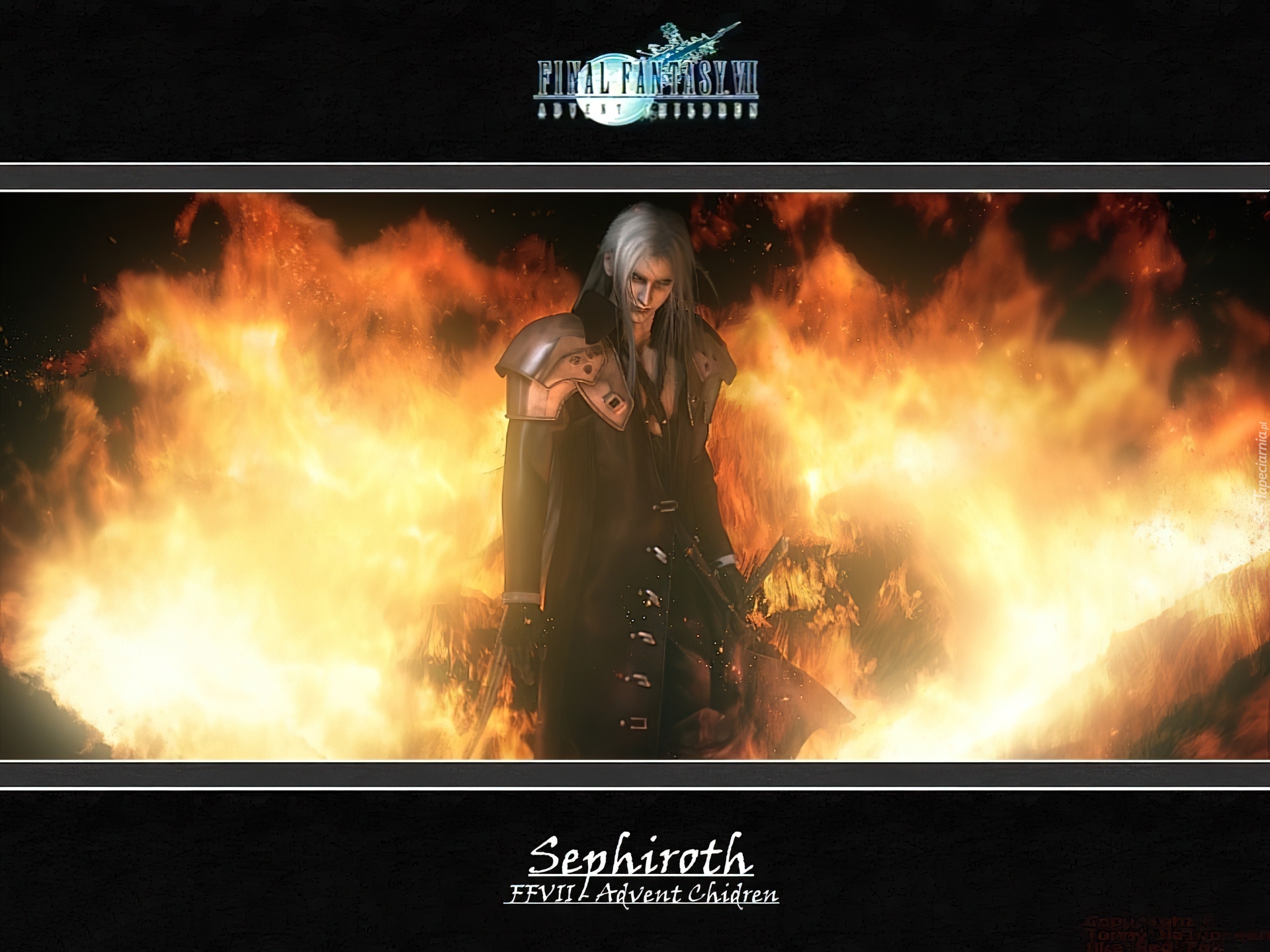 Edytor tapety: Ff 7 Advent Children, napisy, postać, ogień