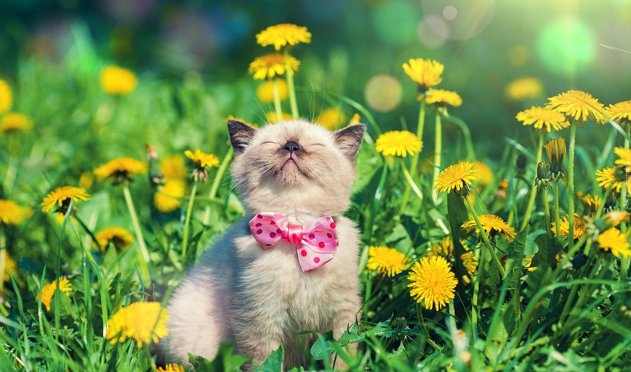 Edytor tapety: Kotek pośród mniszków