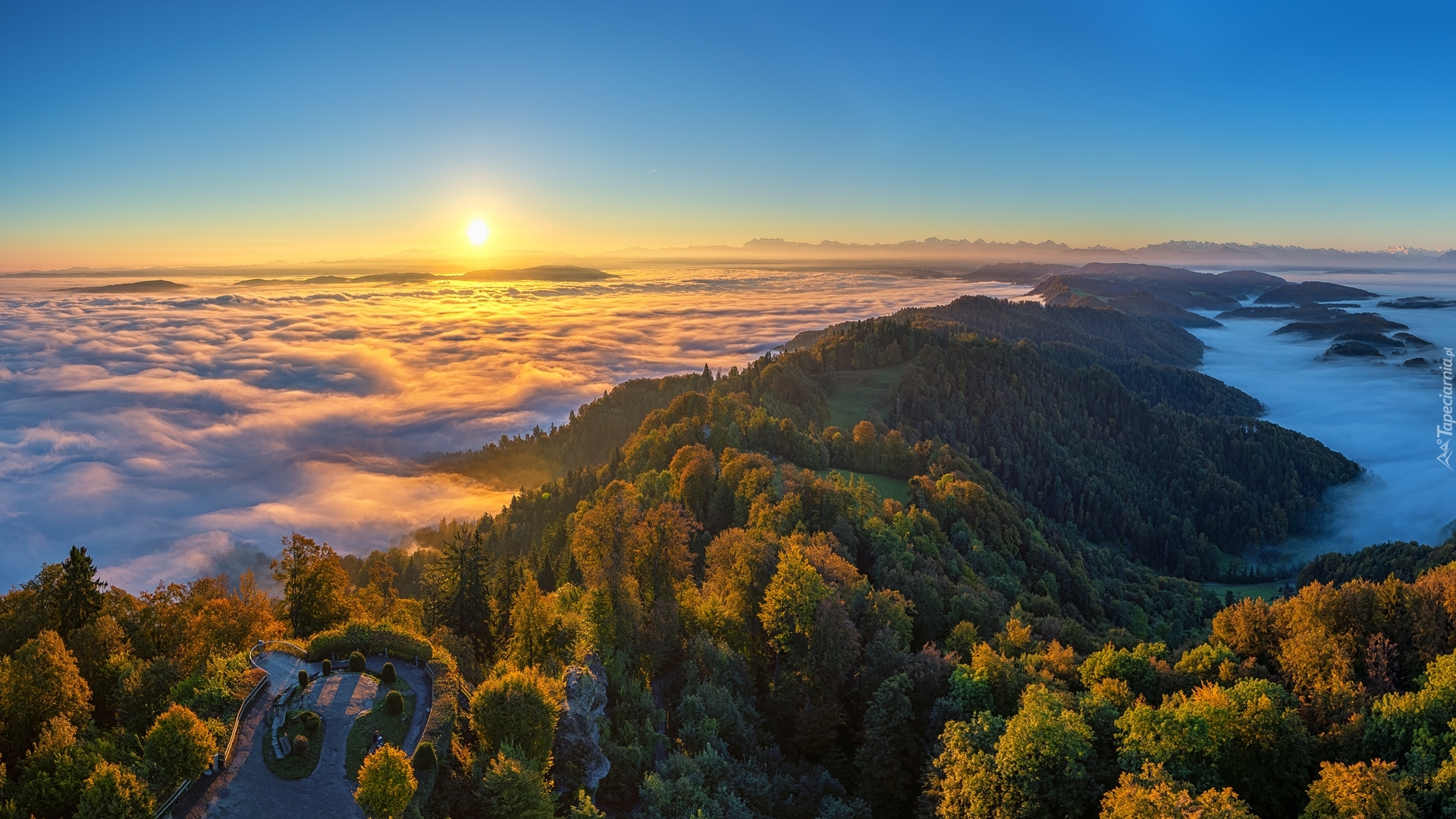 Edytor tapety: Wzgórza o wschodzie słońca