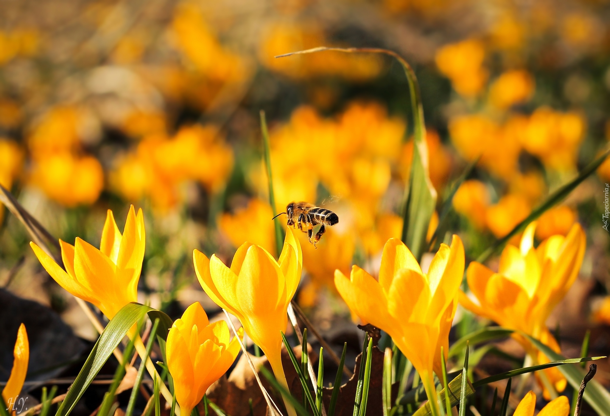 Edytor tapety: Pszczoła nad krokusami
