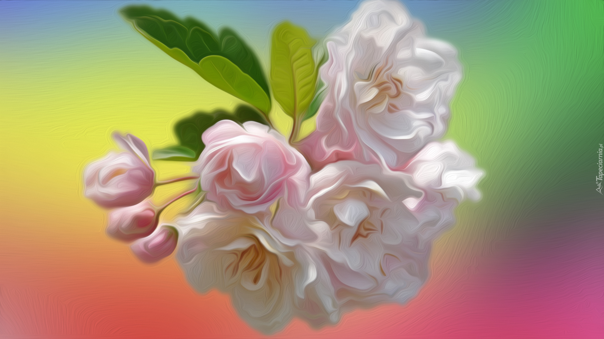 Edytor tapety: Kwitnąca gałązka drzewa owocowego w grafice