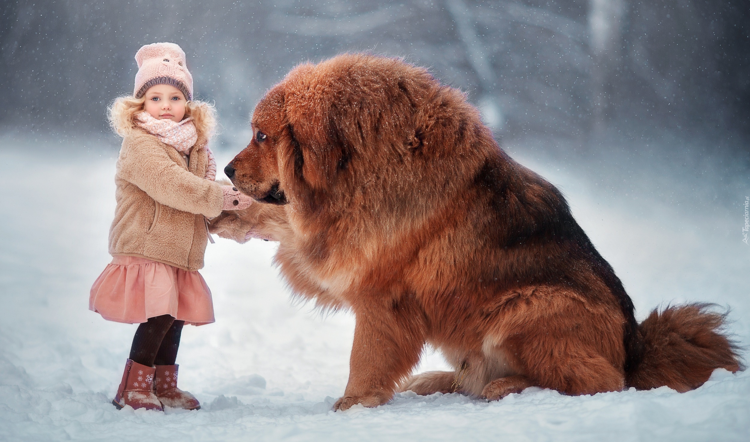 Edytor tapety: Dziewczynka z psem na śniegu