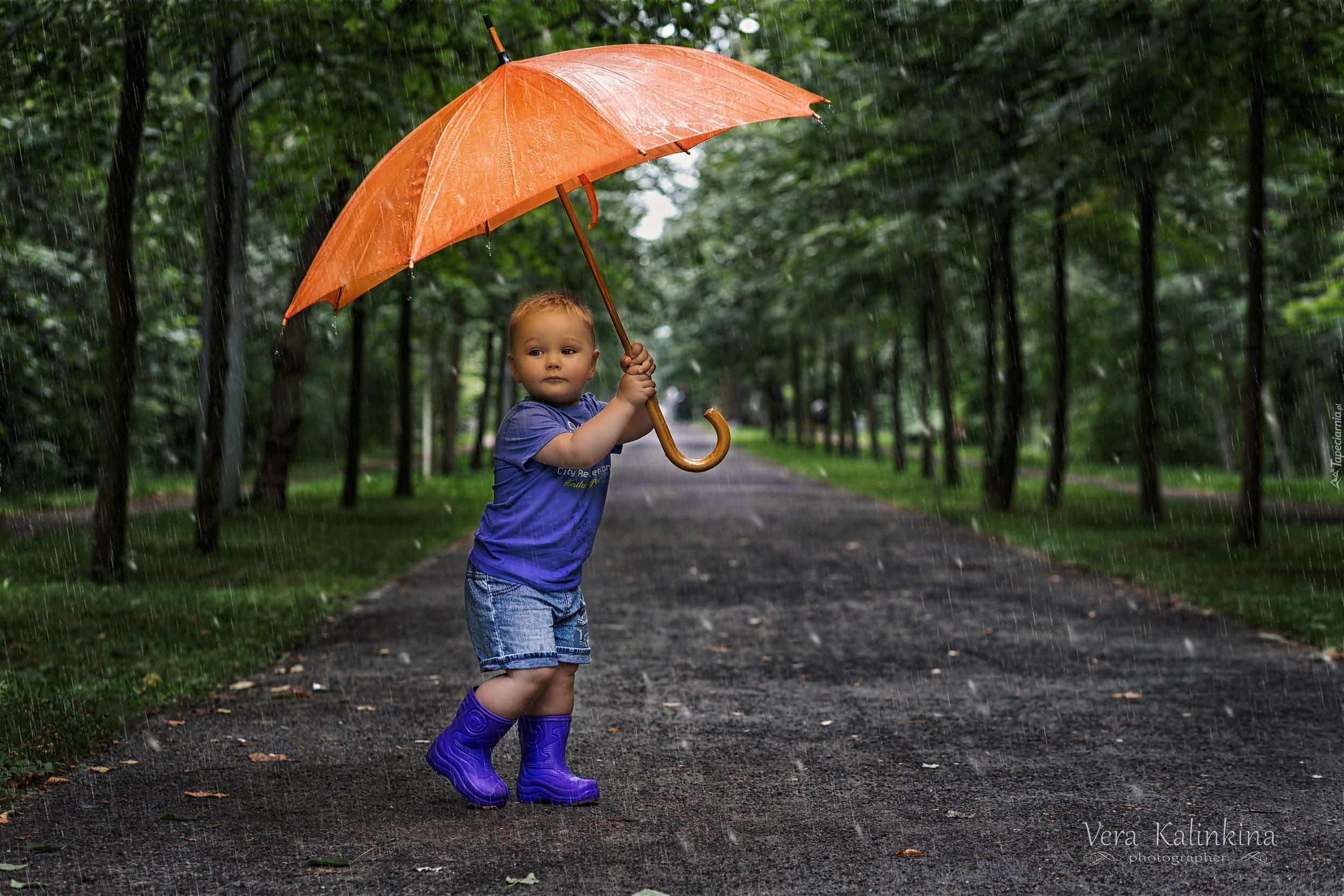 Edytor tapety: Chłopiec w gumowcach z parasolem