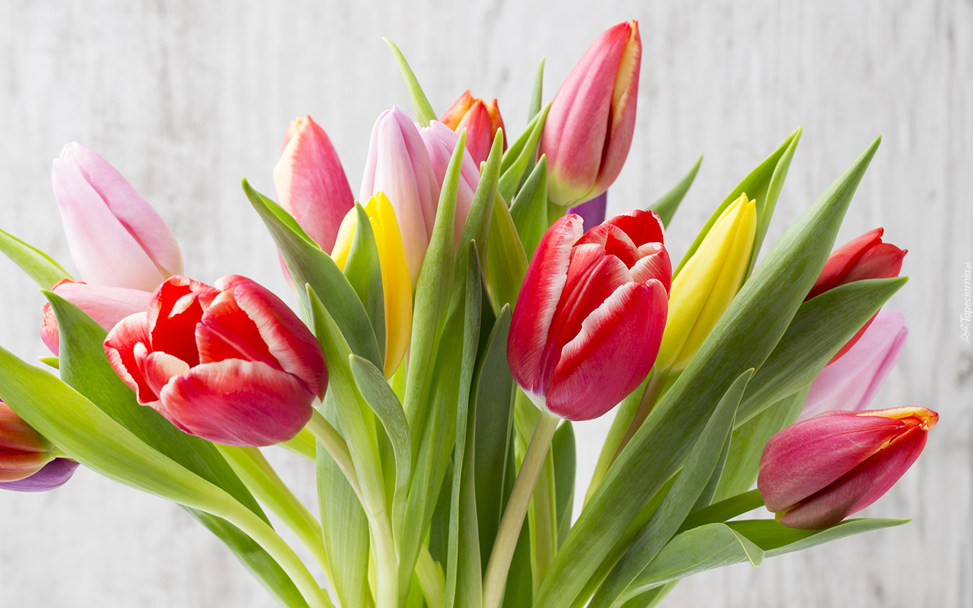 Edytor tapety: Bukiecik kolorowych tulipanów