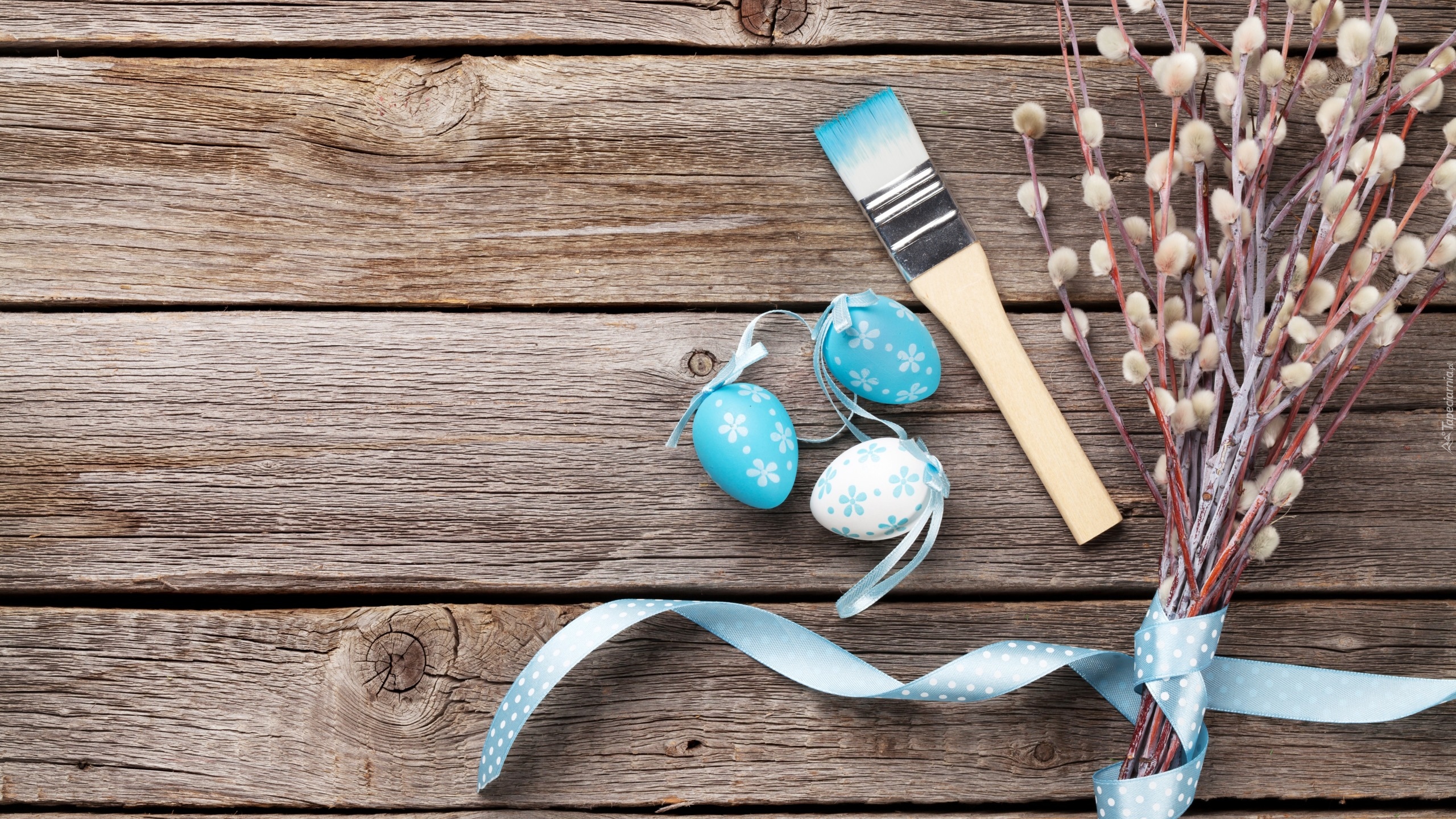 Edytor tapety: Trzy pisanki z pędzlem i bukietem bazi
