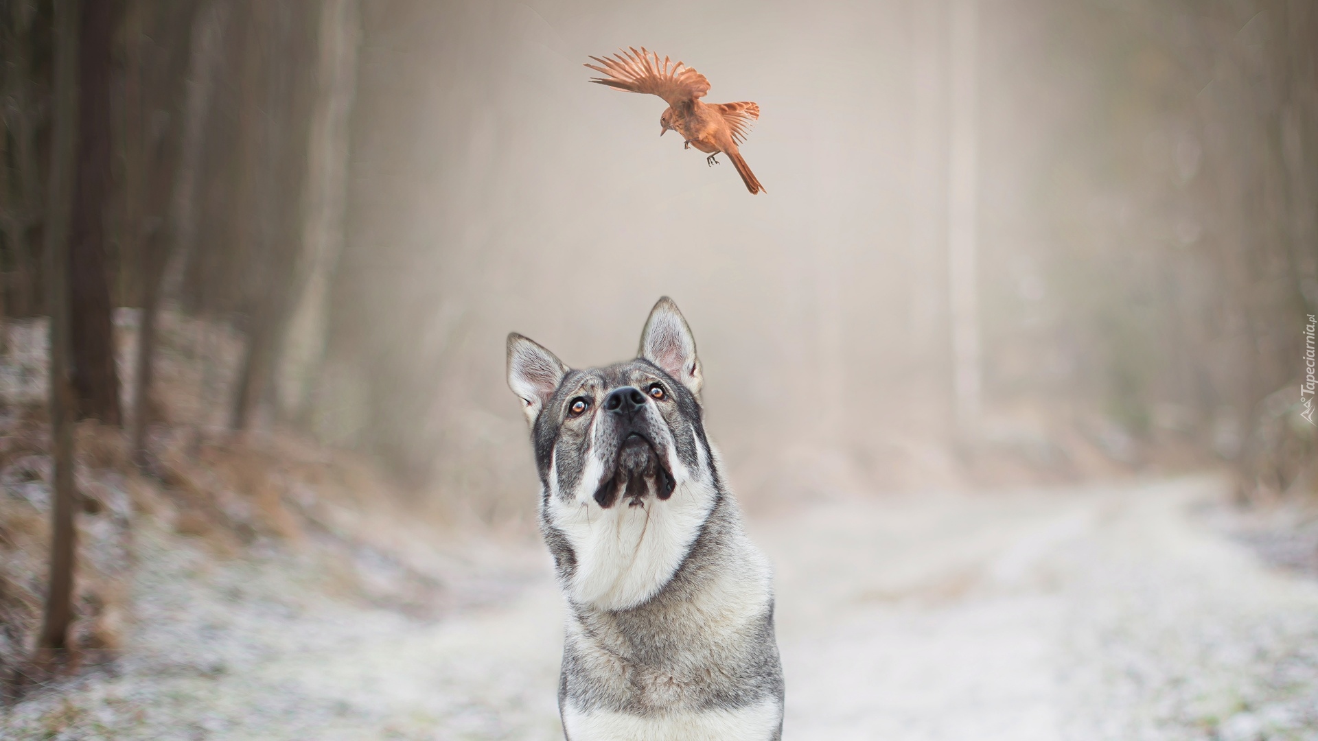 Edytor tapety: Elkhund zerkający na ptaka
