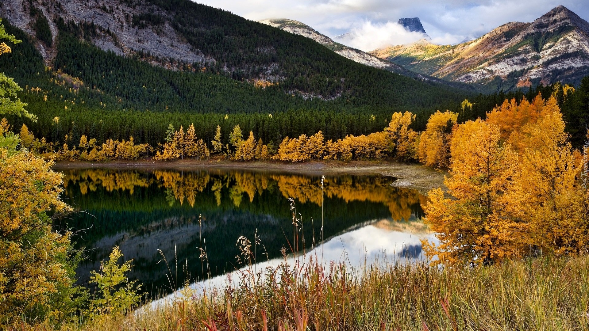 Edytor tapety: Drzewa jesienią nad jeziorem