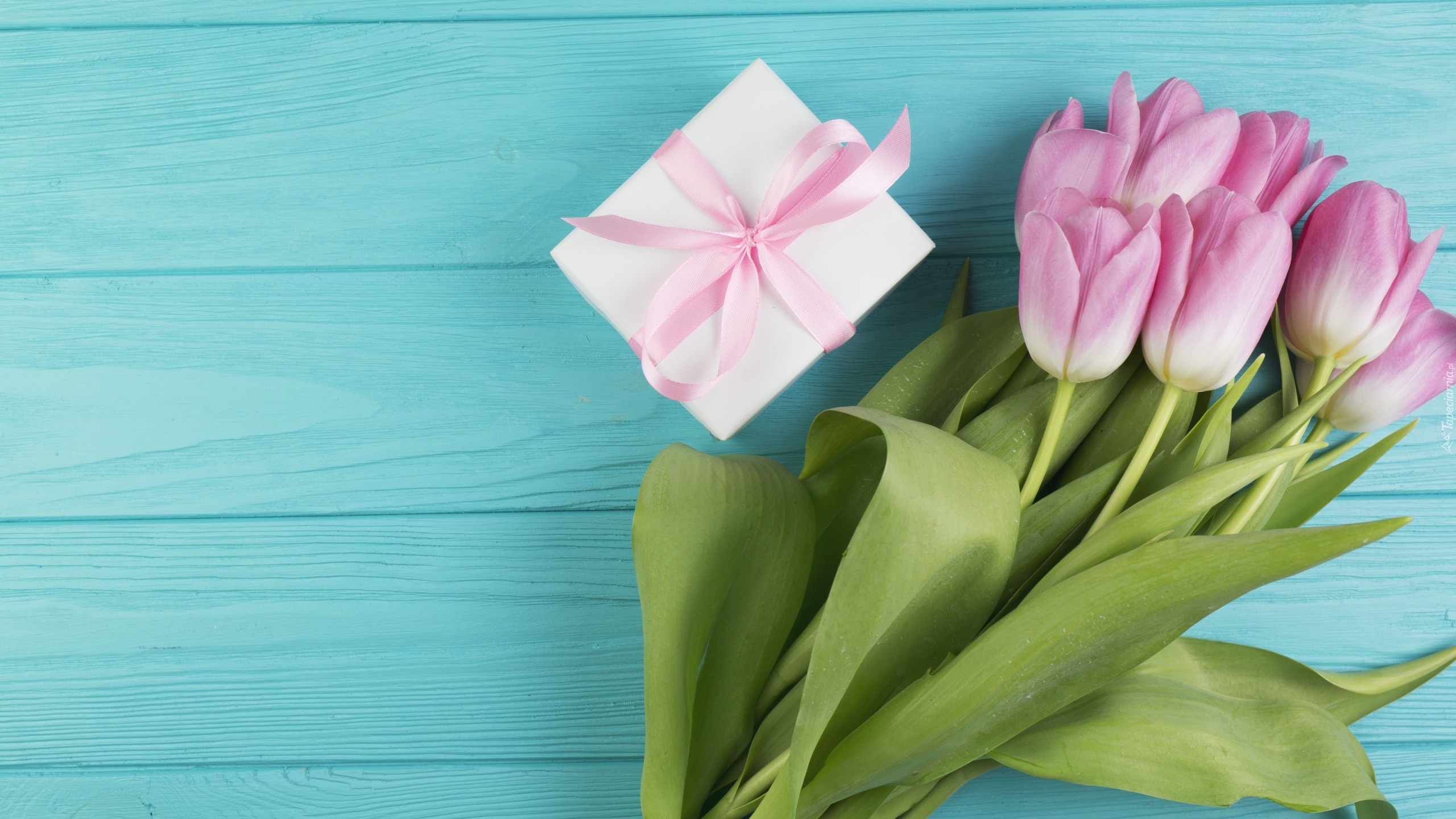 Edytor tapety: Prezent obok tulipanów