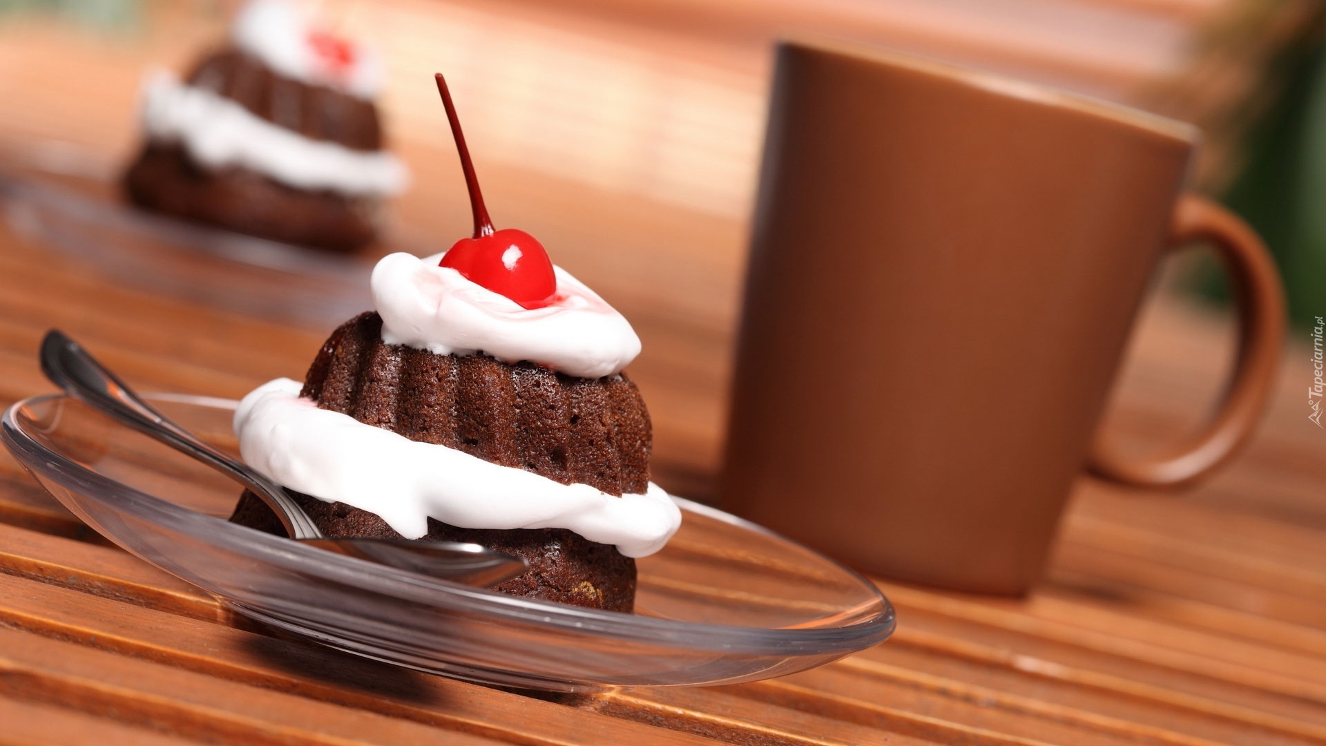 Edytor tapety: Ciastko czekoladowe ze śmietaną i wisienką