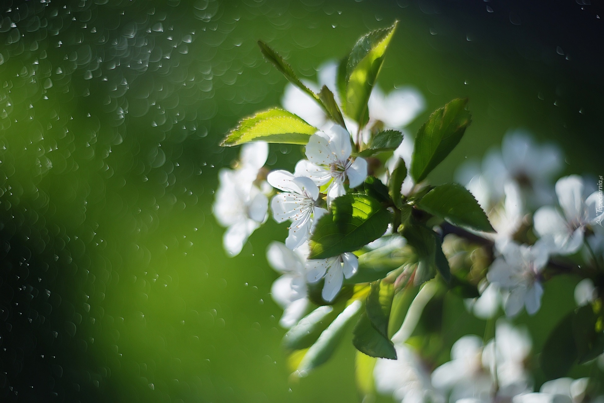 Edytor tapety: Gałązka z białymi kwiatami