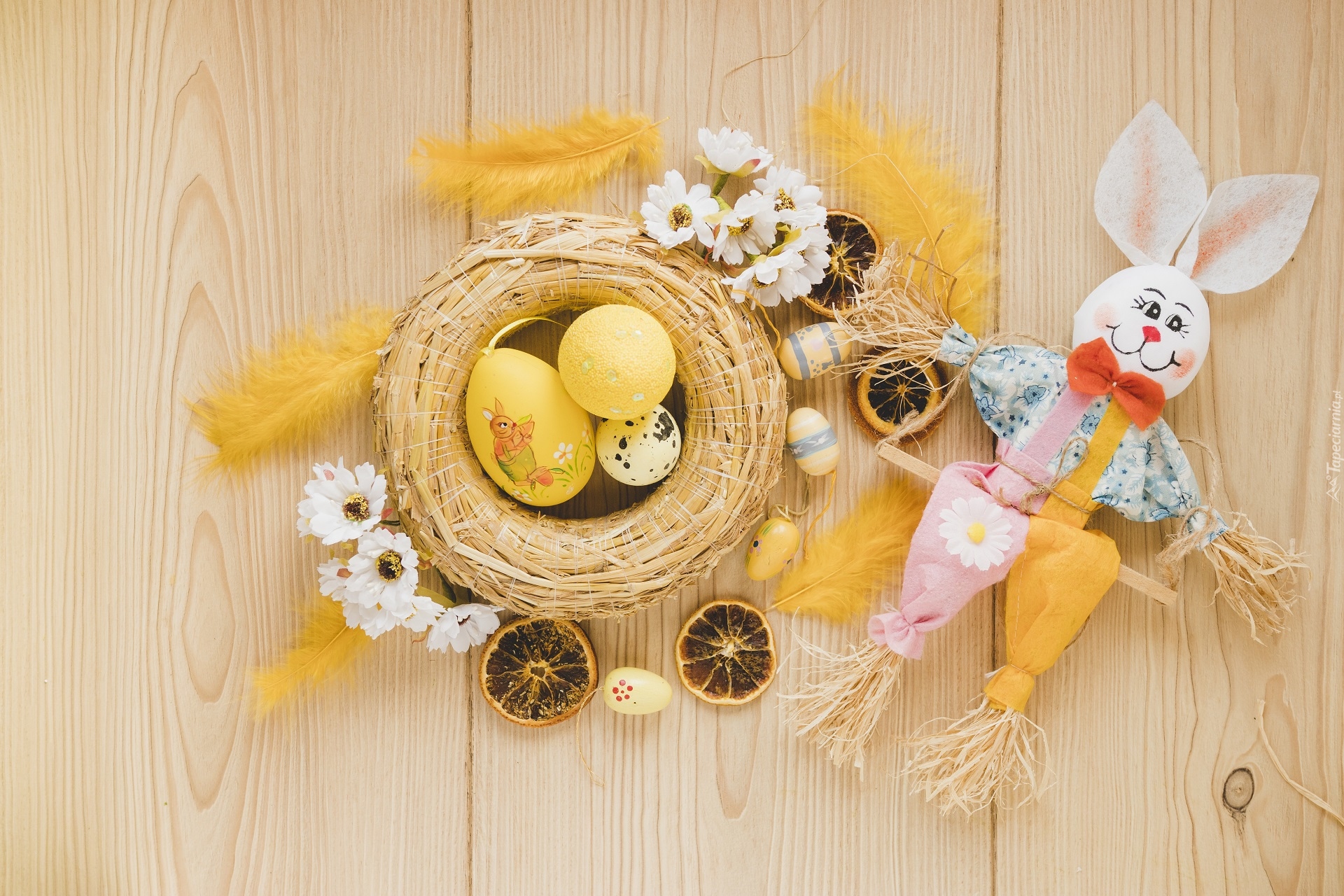 Edytor tapety: Zajączek wielkanocny z pisankami