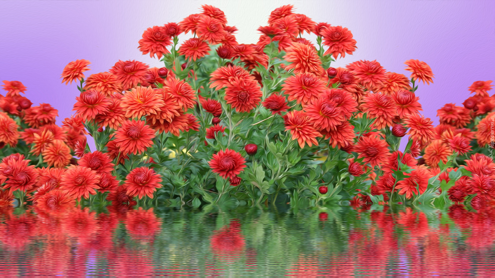 Edytor tapety: Czerwone kwiaty w odbiciu