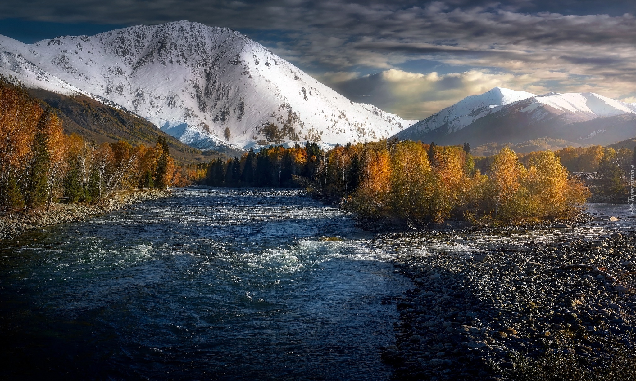 Edytor tapety: Ośnieżone góry nad rzeką