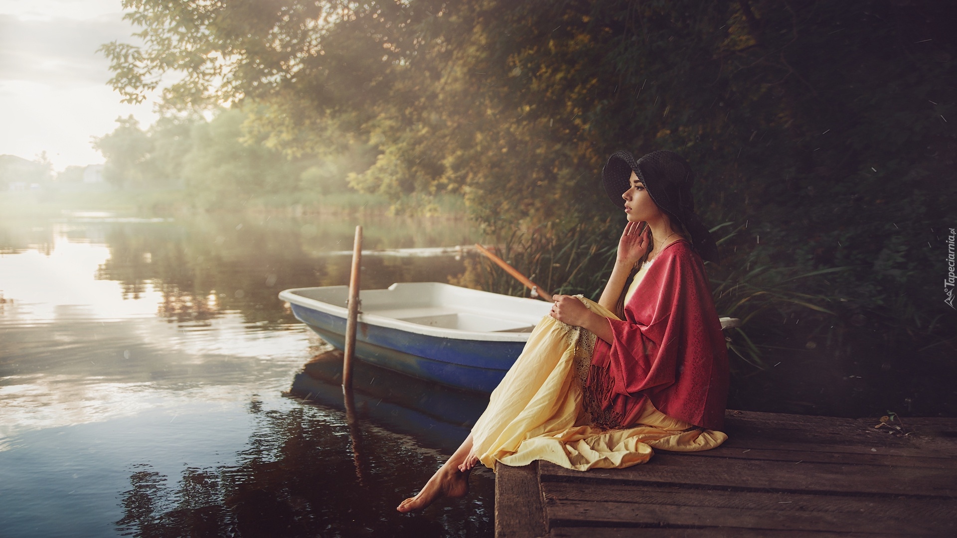 Edytor tapety: Zamyślona kobieta na pomoście