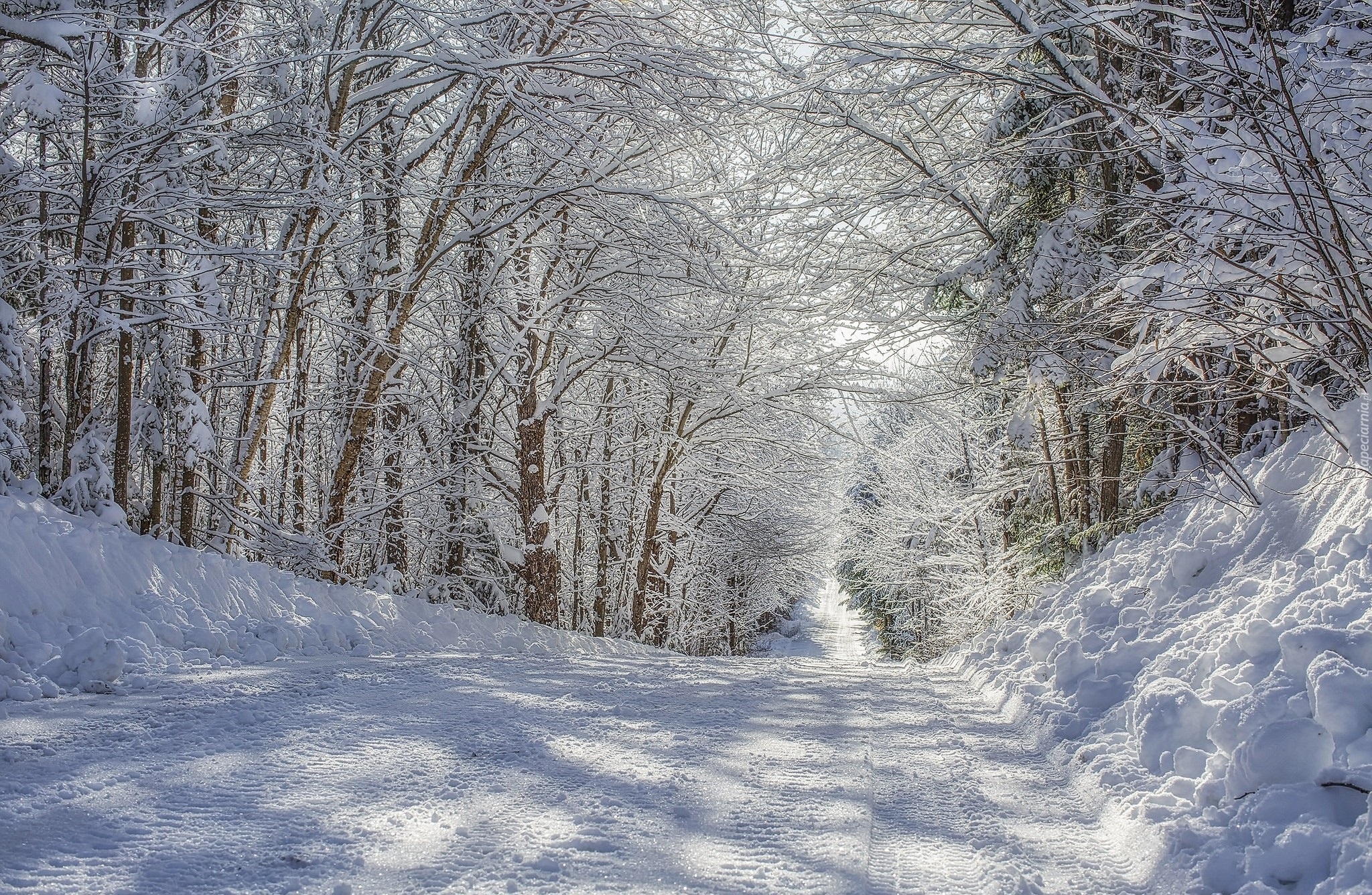 Edytor tapety: Zaśnieżone drzewa wzdłuż drogi