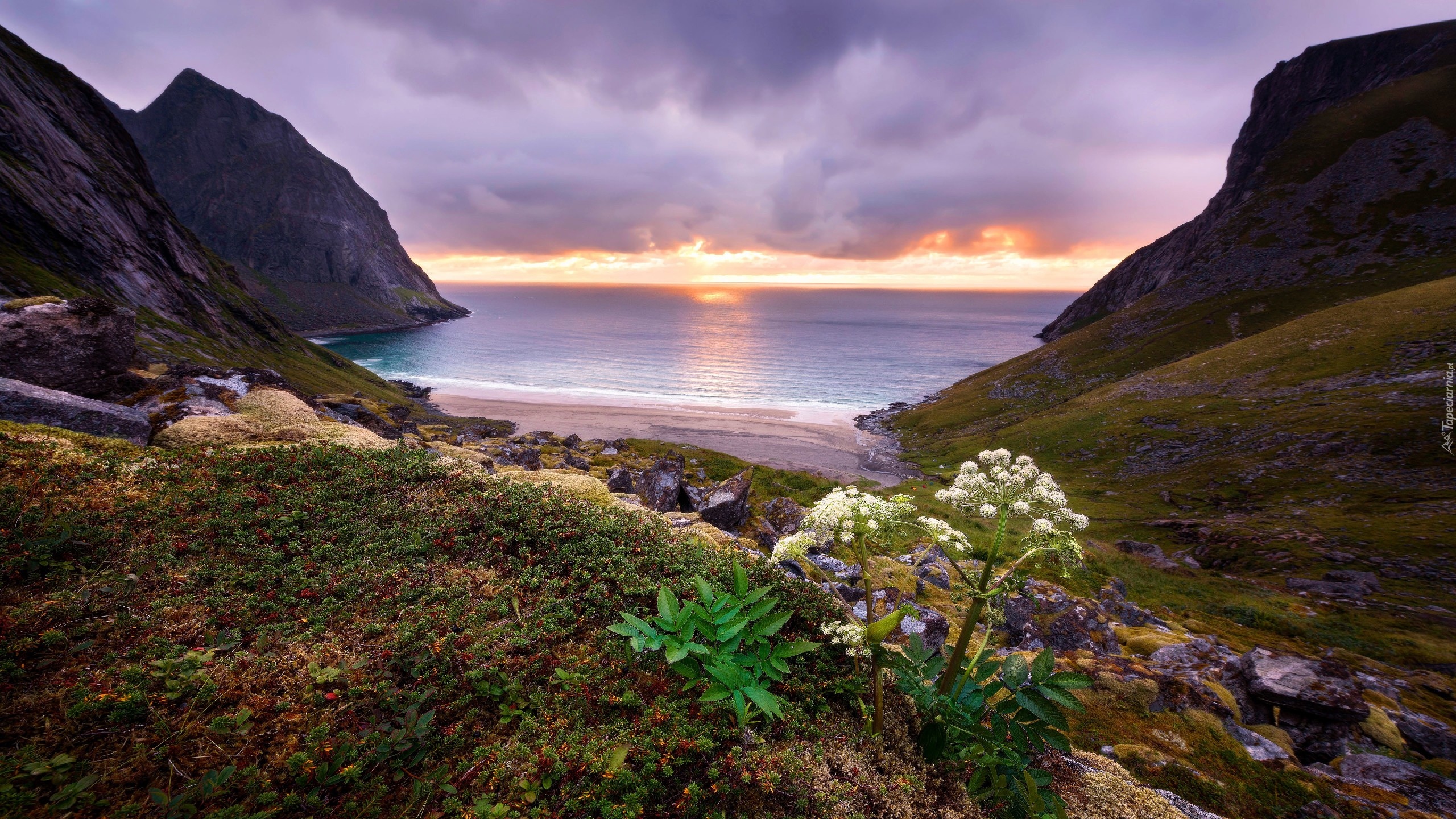 Edytor tapety: Widok na plażę Kvalvika w Norwegii