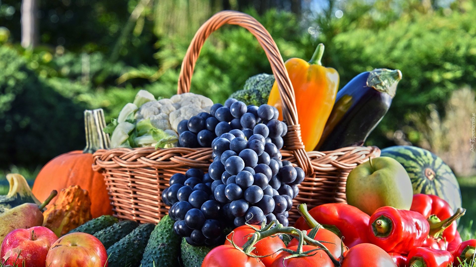 Edytor tapety: Kosz pełen owoców i warzyw