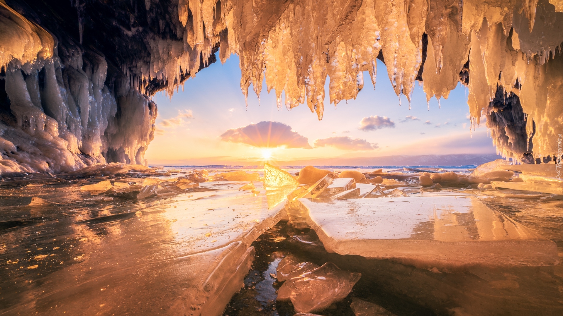 Edytor tapety: Jaskinia lodowa z widokiem na jezioro Bajkał