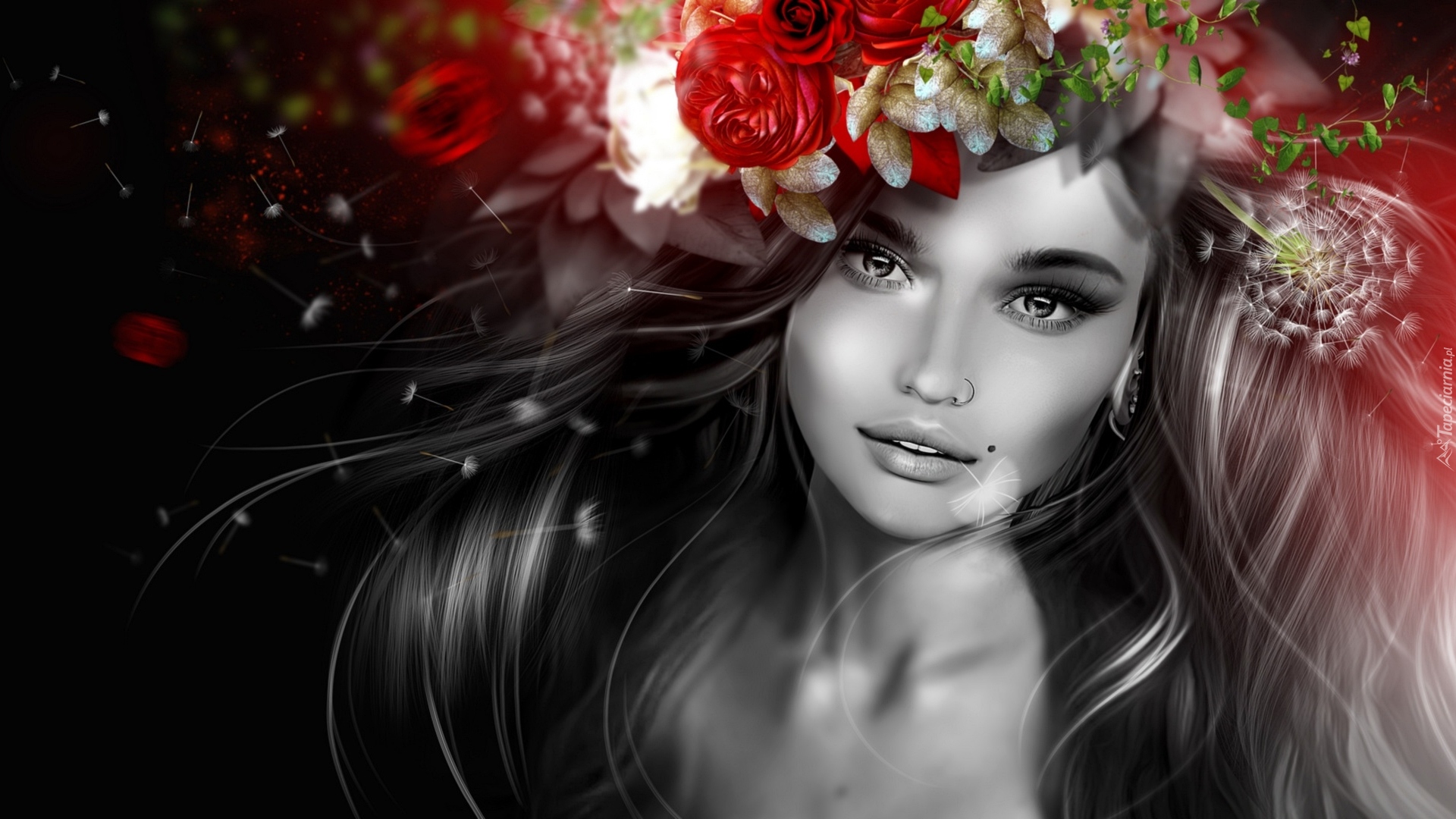 Edytor tapety: Dziewczyna w wianku z rozwianymi włosami
