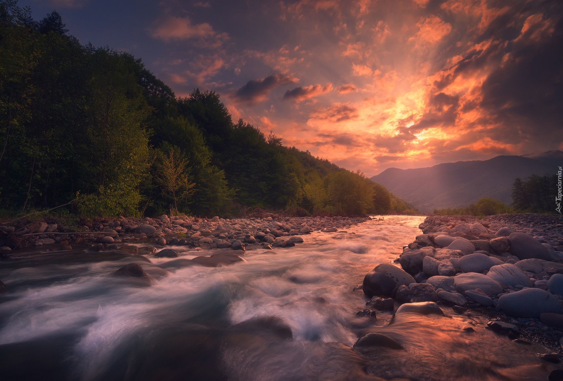 Edytor tapety: Zachód słońca nad rzeką Rioni w Gruzji