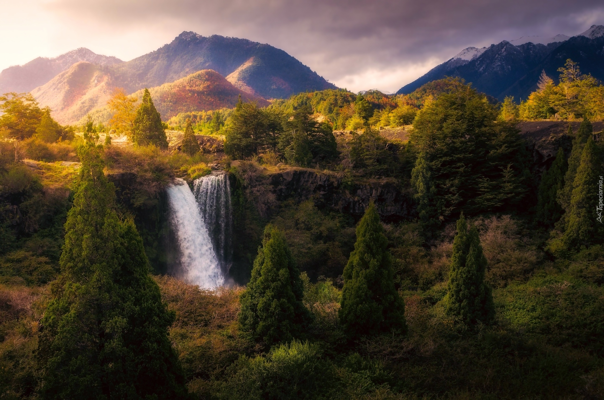 Edytor tapety: Wodospad na tle gór