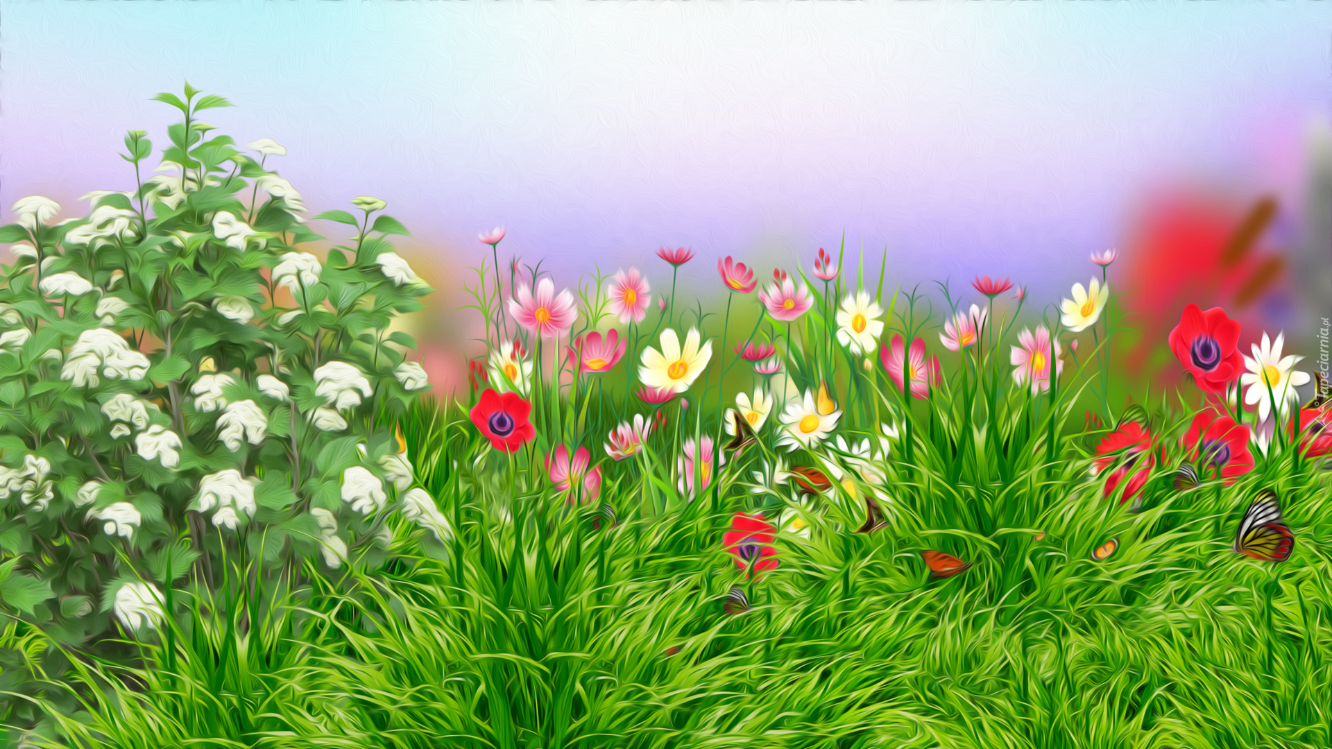 Edytor tapety: Graficzna łąka z kwiatami i trawą