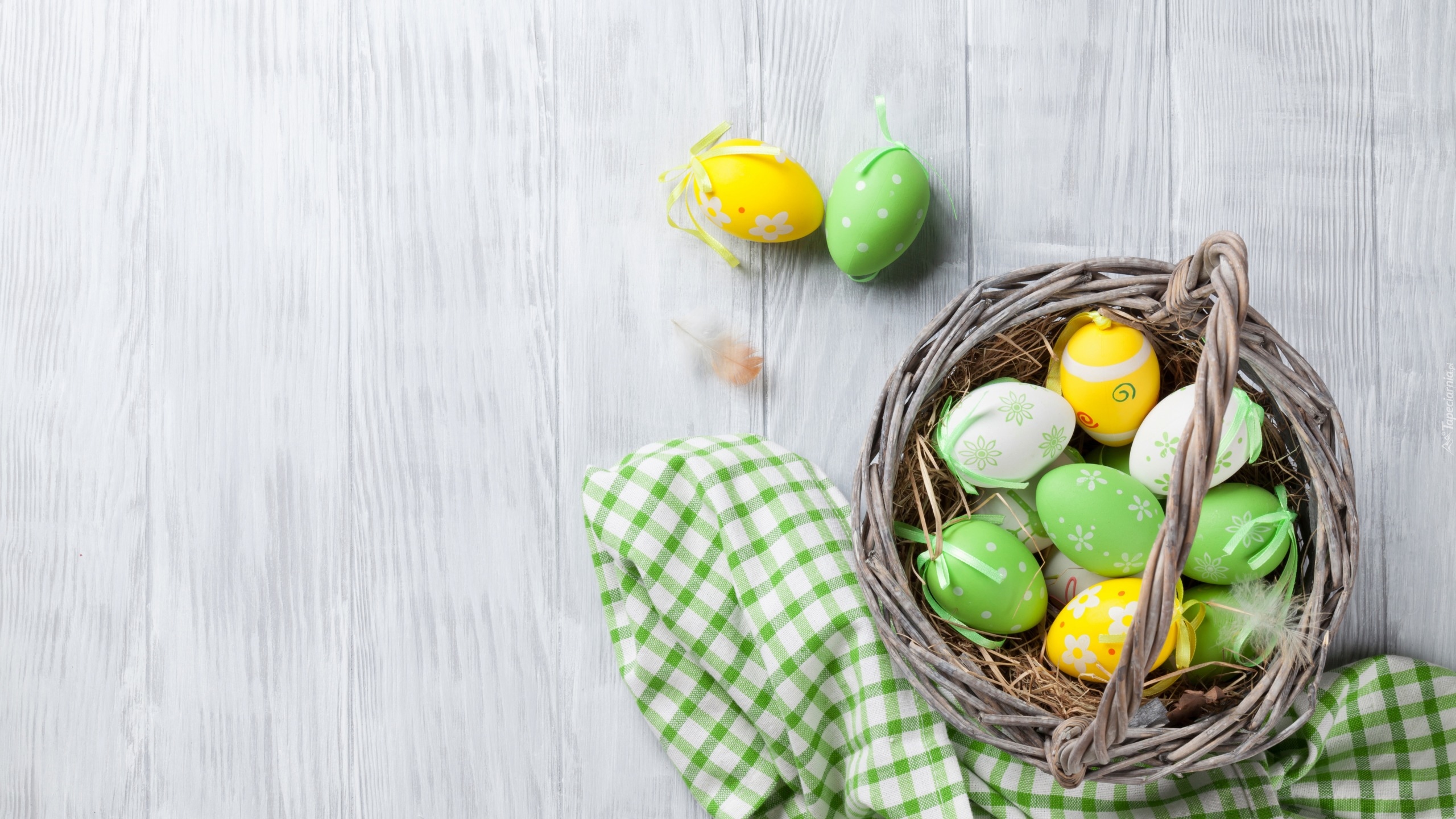 Edytor tapety: Pisanki w koszyku z ściereczką