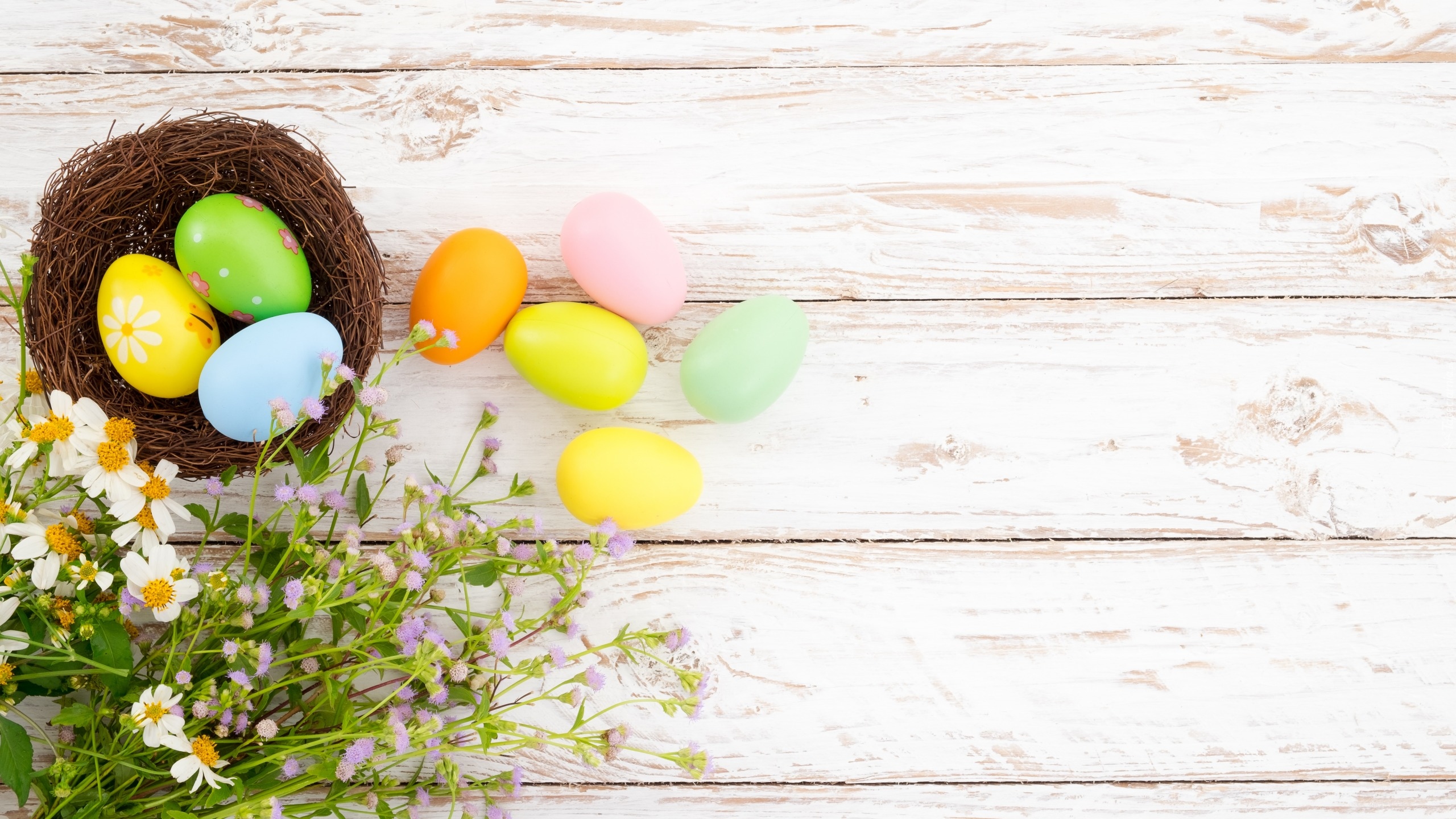 Edytor tapety: Kwiatki z pisankami w koszyku