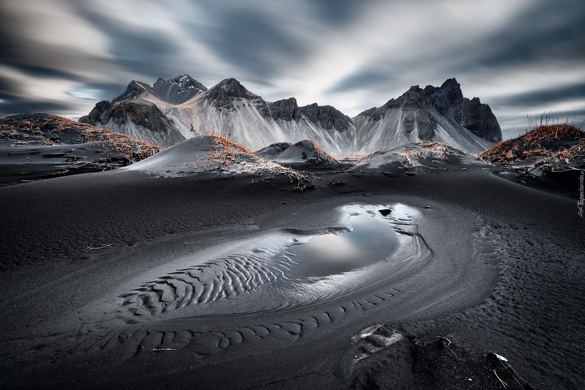 Edytor tapety: Plaża Stokksnes u podnóża góry Vestrahorn