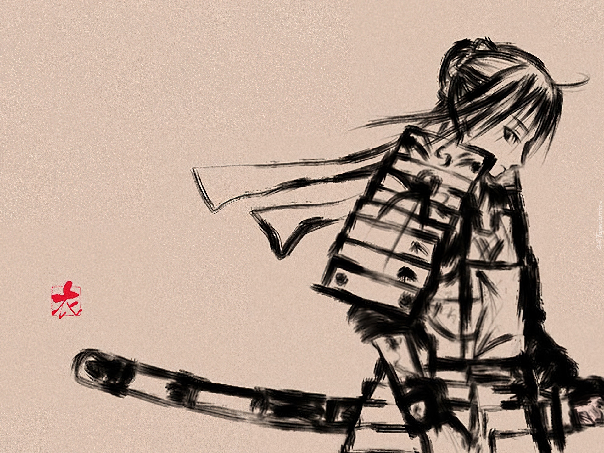 Edytor tapety: Fate Stay Night, samuraj, kobieta, szkic