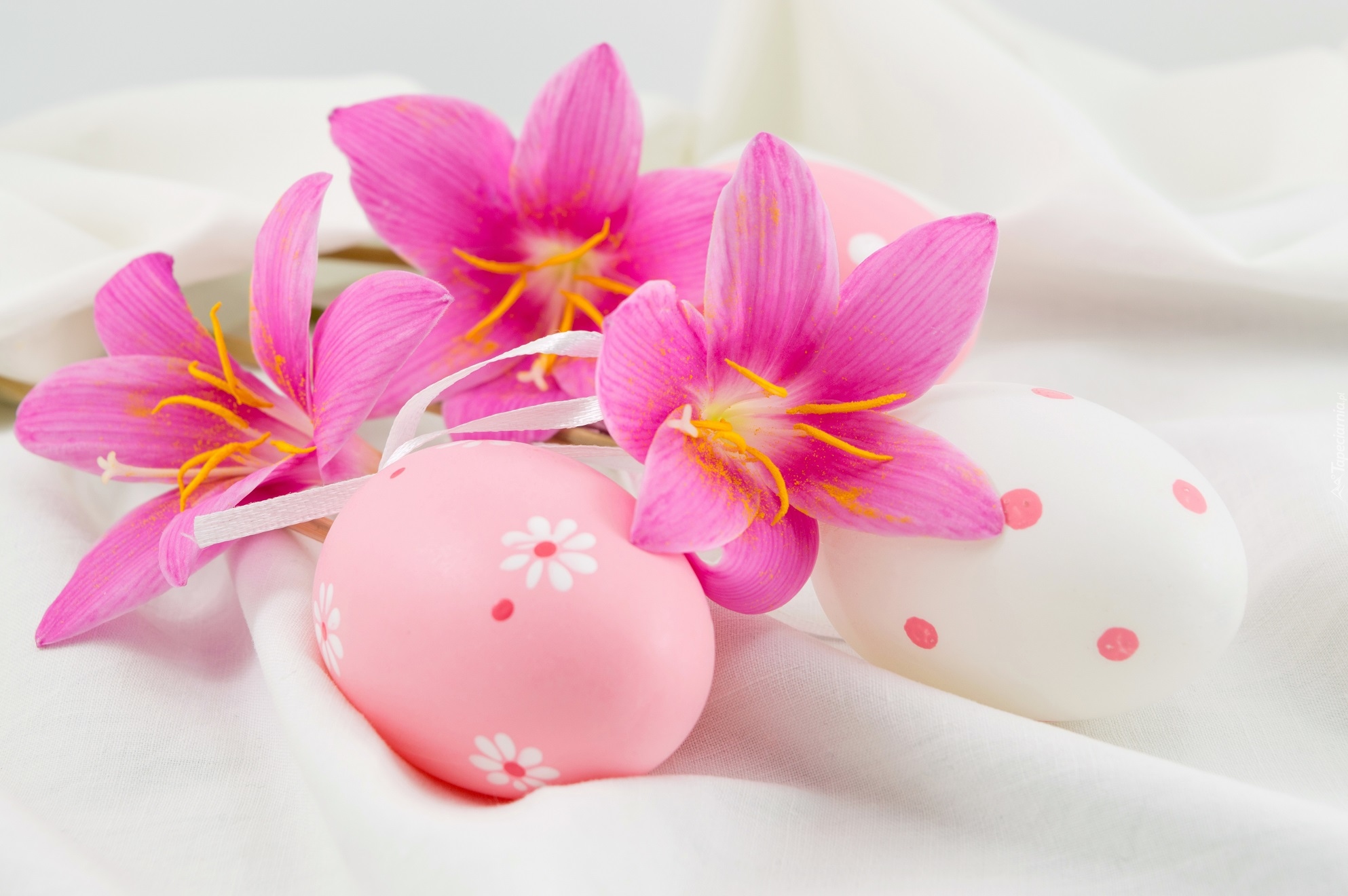 Edytor tapety: Różowe kwiaty na pisankach