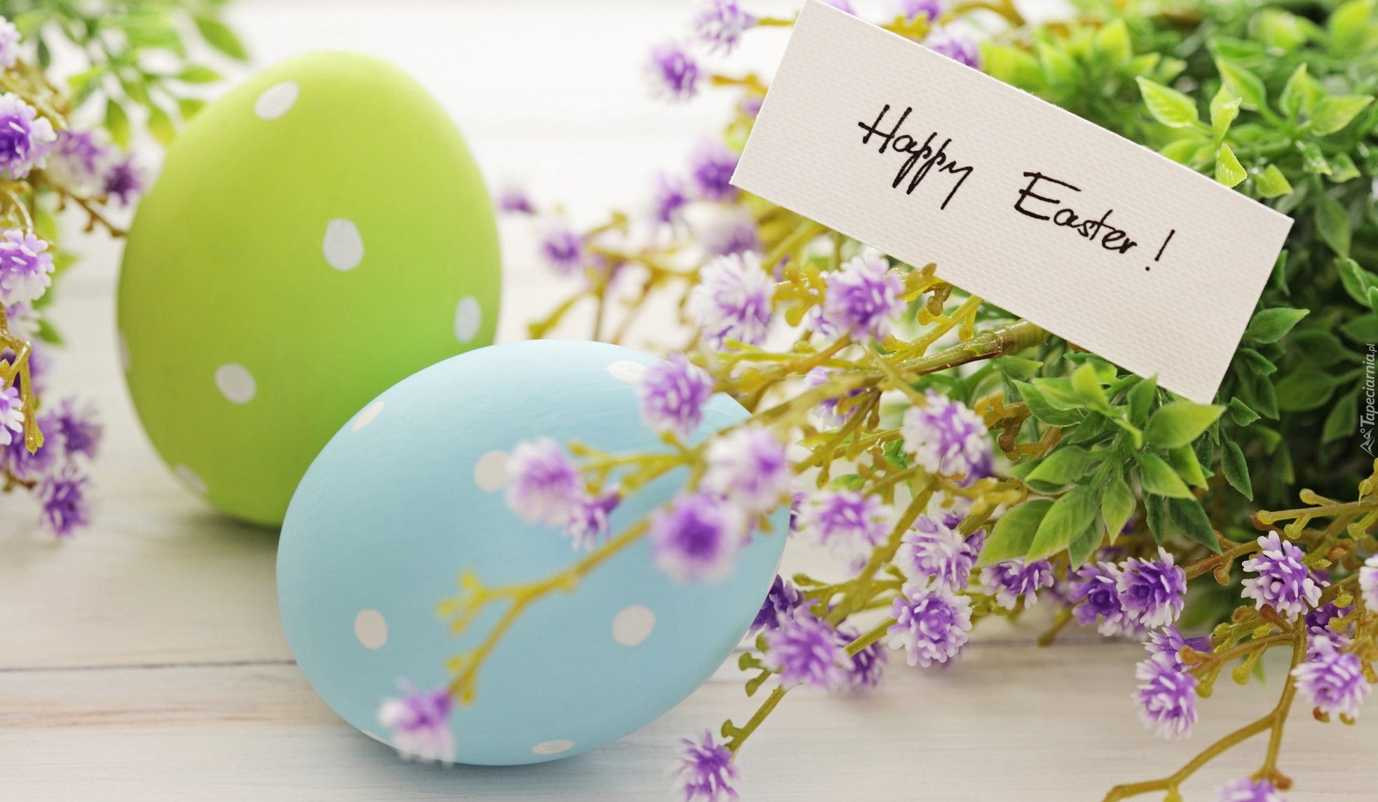 Edytor tapety: Dwie pisanki i kartka z życzeniami