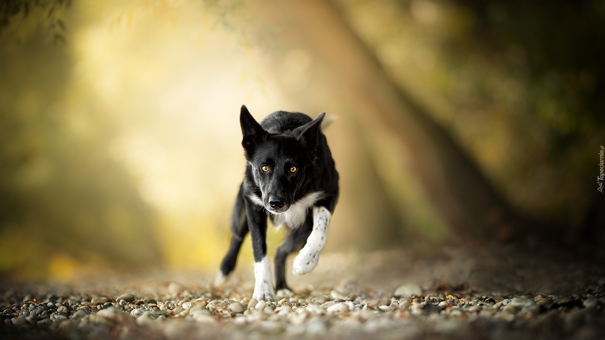 Edytor tapety: Biegnący border collie po kamykach