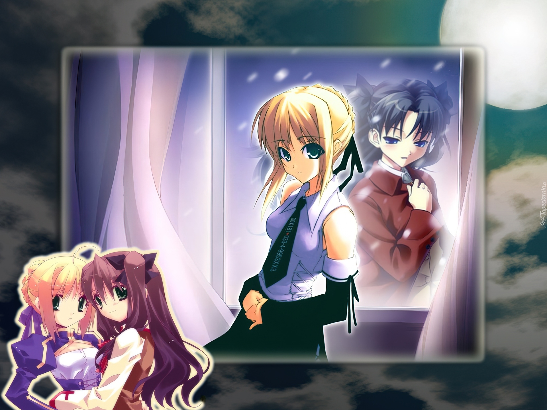 Edytor tapety: noc, chmury, Fate Stay Night, dziewczyny, okno