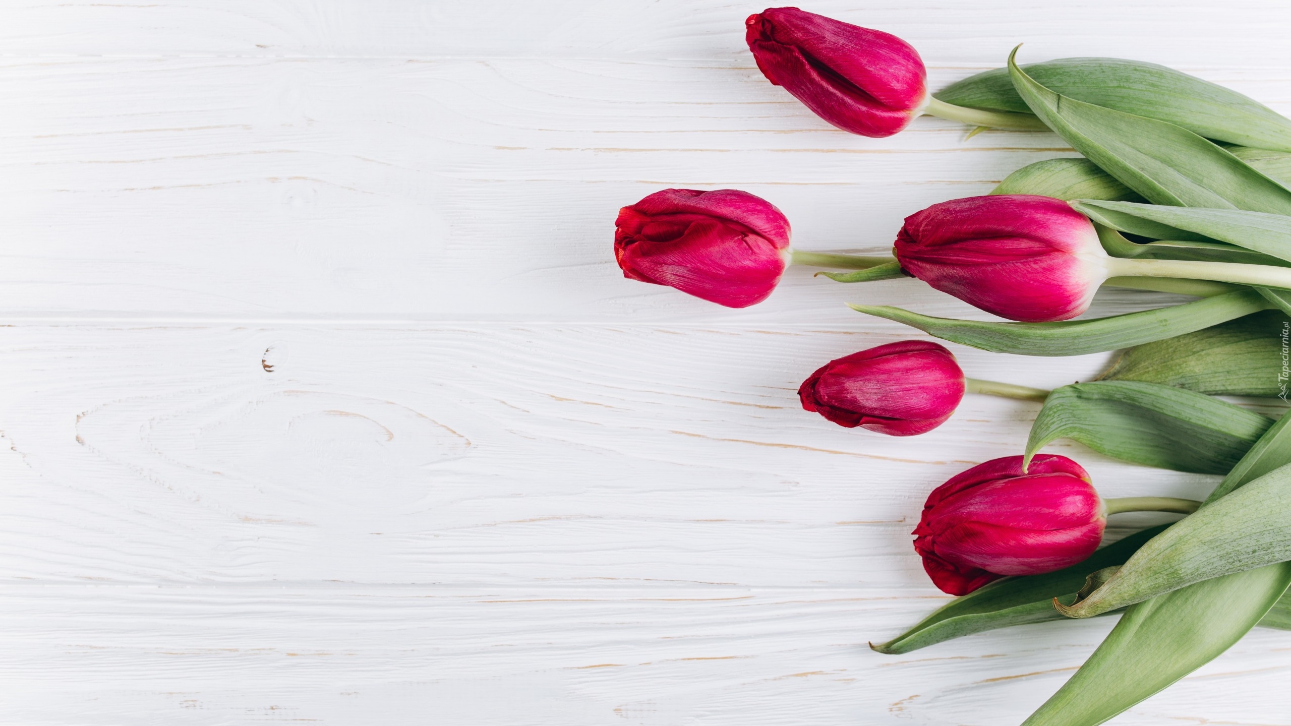 Edytor tapety: Czerwone tulipany na desce