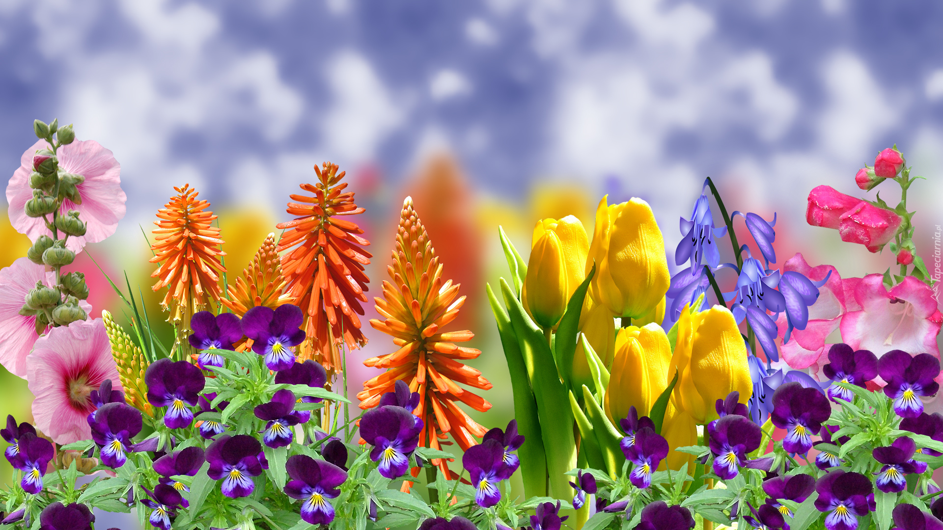 Edytor tapety: Wiosenne kolorowe kwiatki