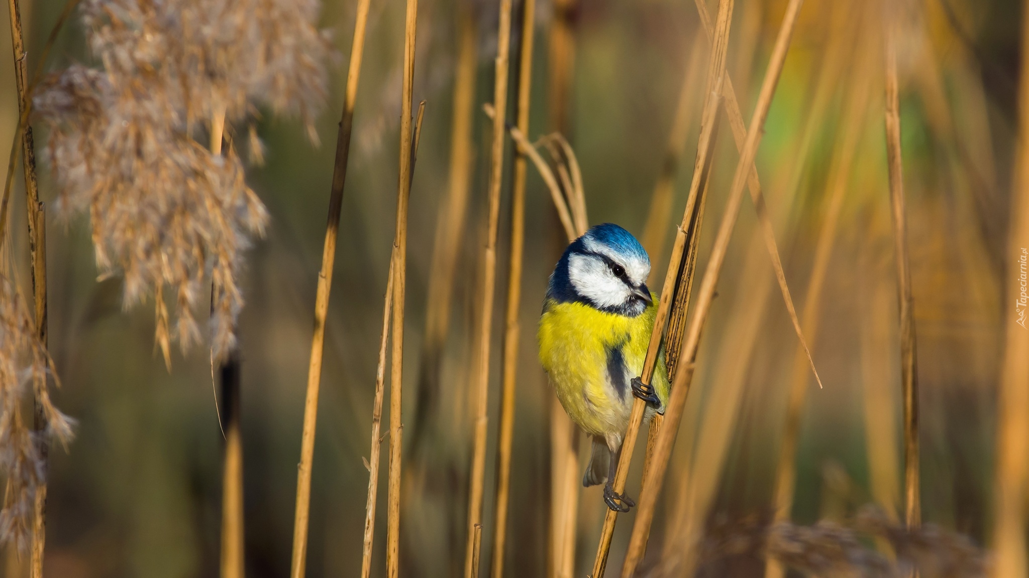 Edytor tapety: Modraszka zwyczajna na trzcinie