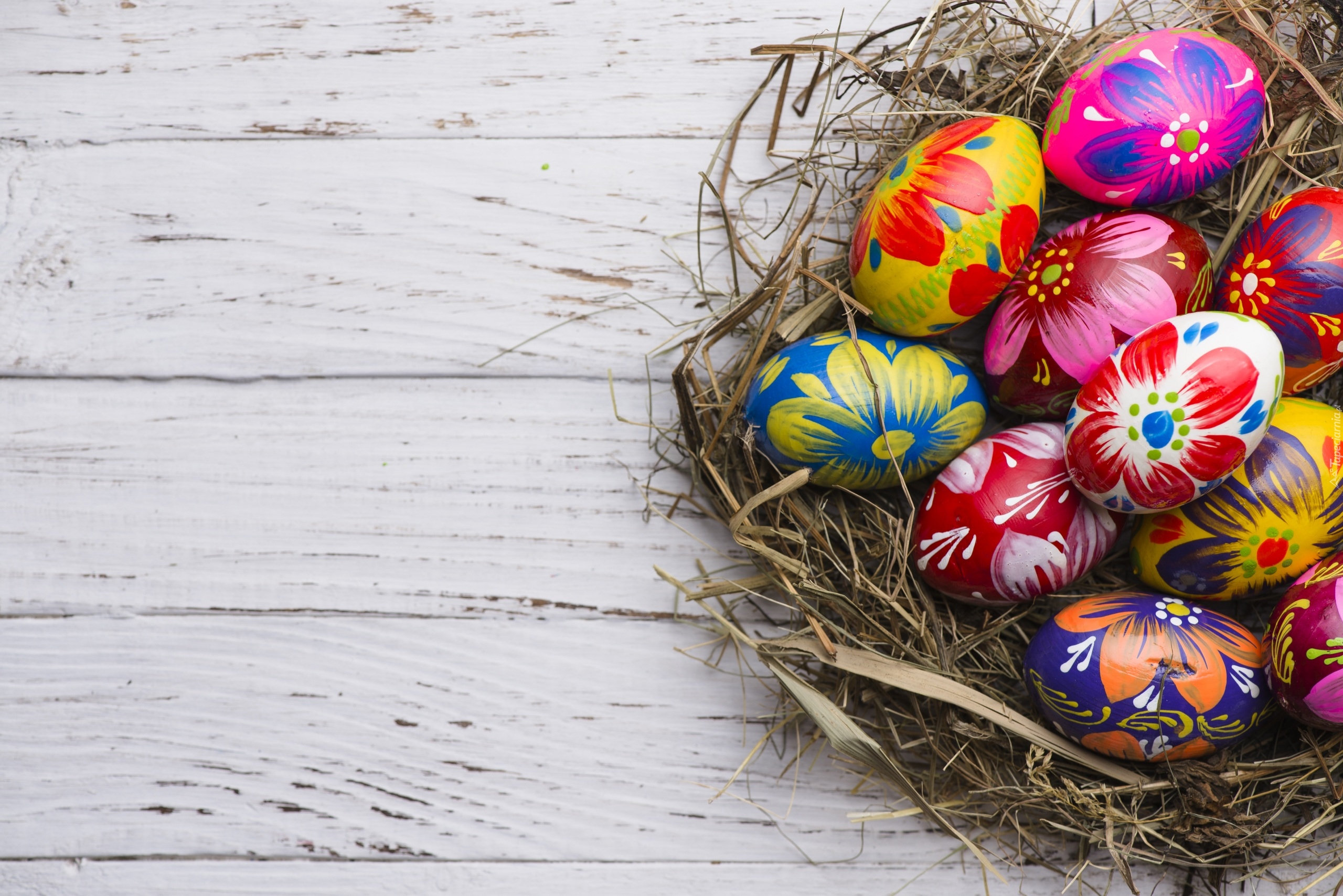 Edytor tapety: Kolorowe pisanki świąteczne na sianie