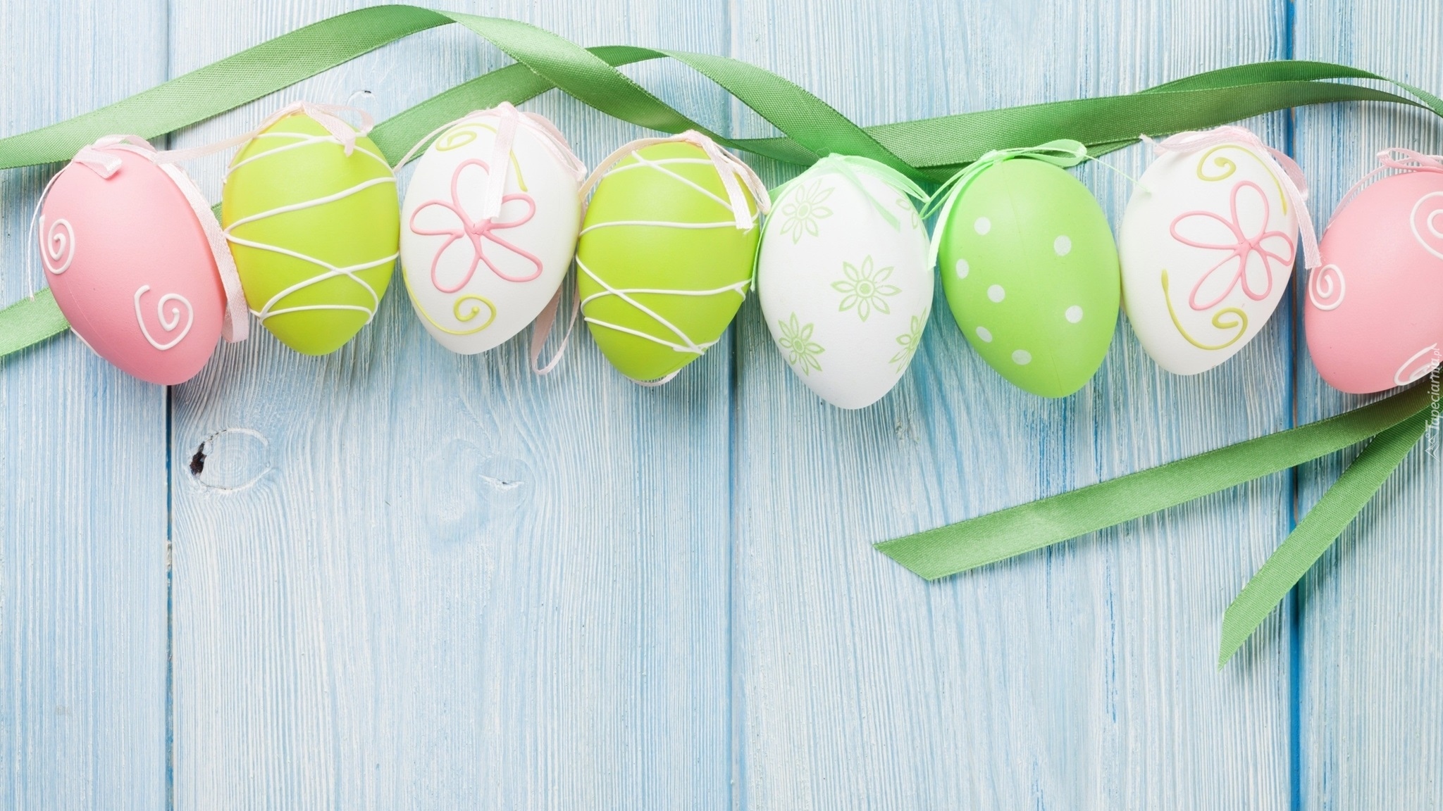 Edytor tapety: Pisanki na zielonej wstążce