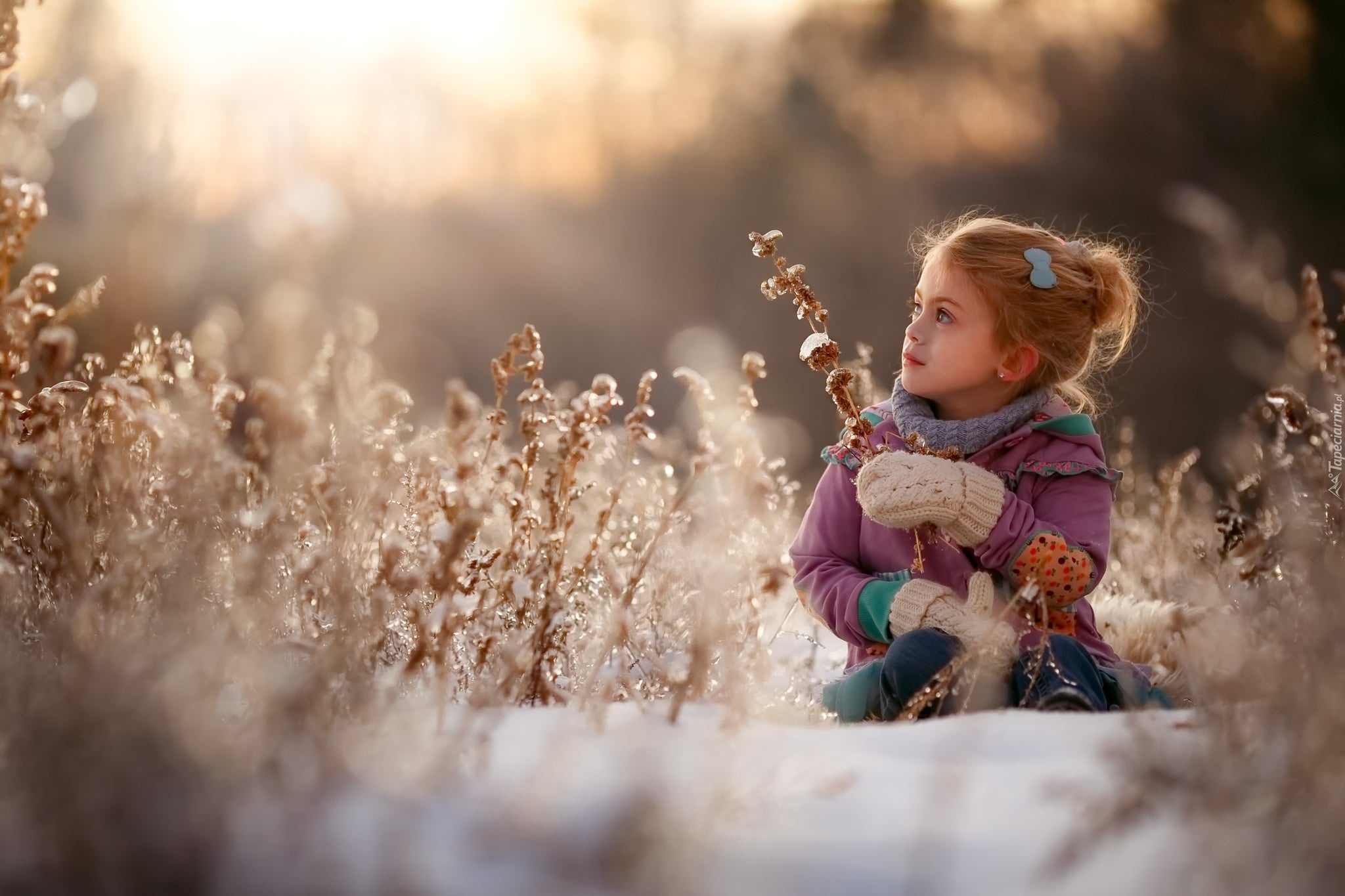 Edytor tapety: Dziewczynka pośród roślinek w zimowej scenerii