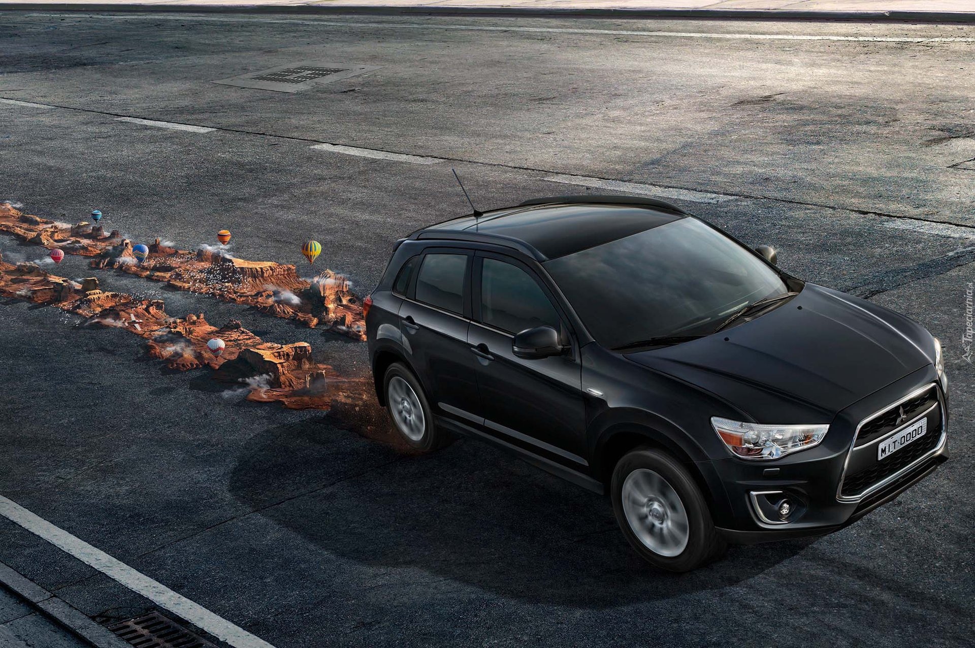 Edytor tapety: Góry jako ślady kół Mitsubishi