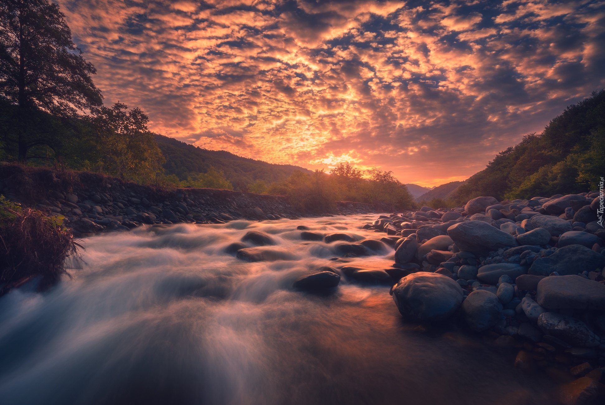 Edytor tapety: Zachód słońca nad gruzińską rzeką Rioni