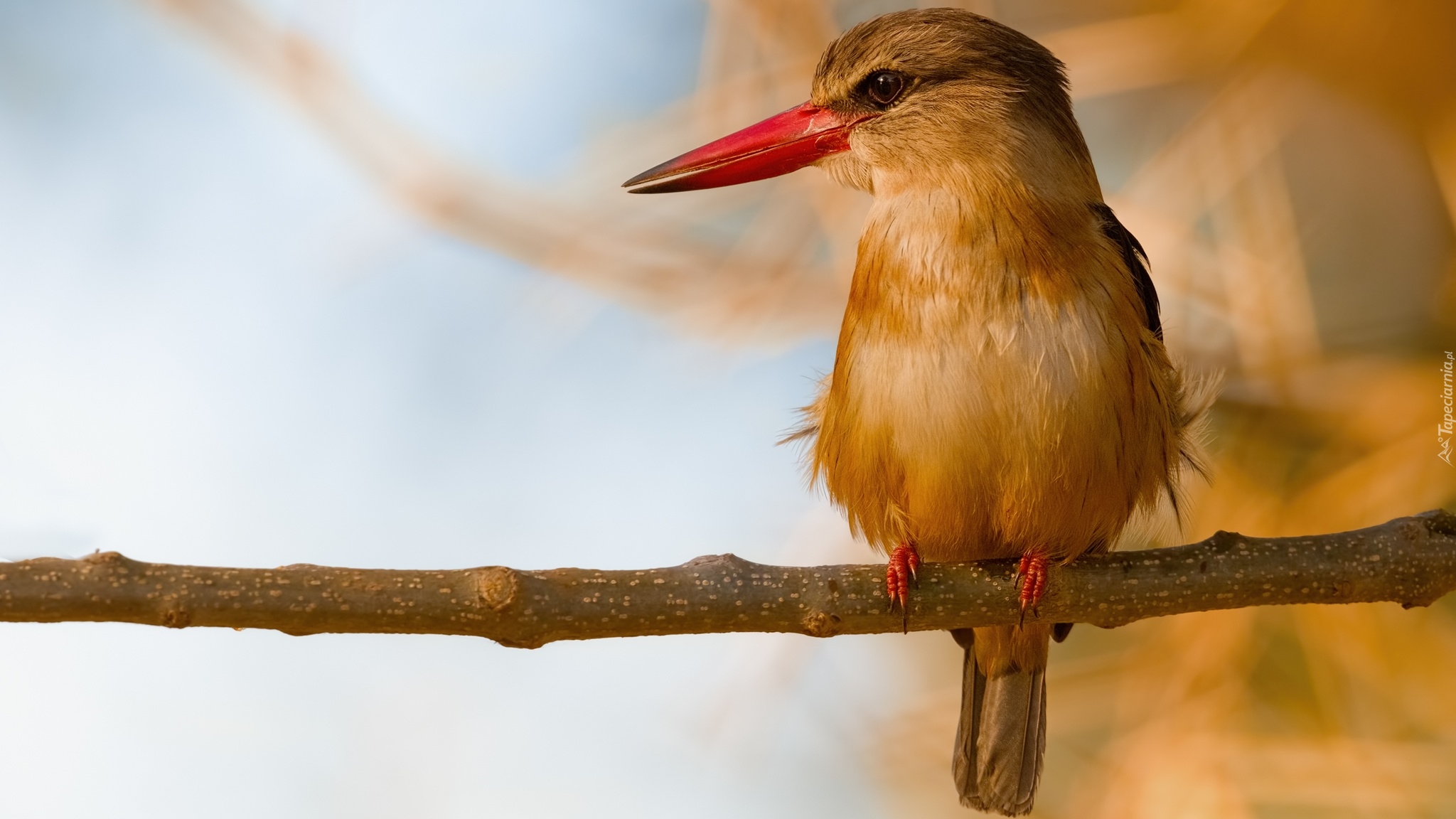 Edytor tapety: Łowiec brązowogłowy na gałązce