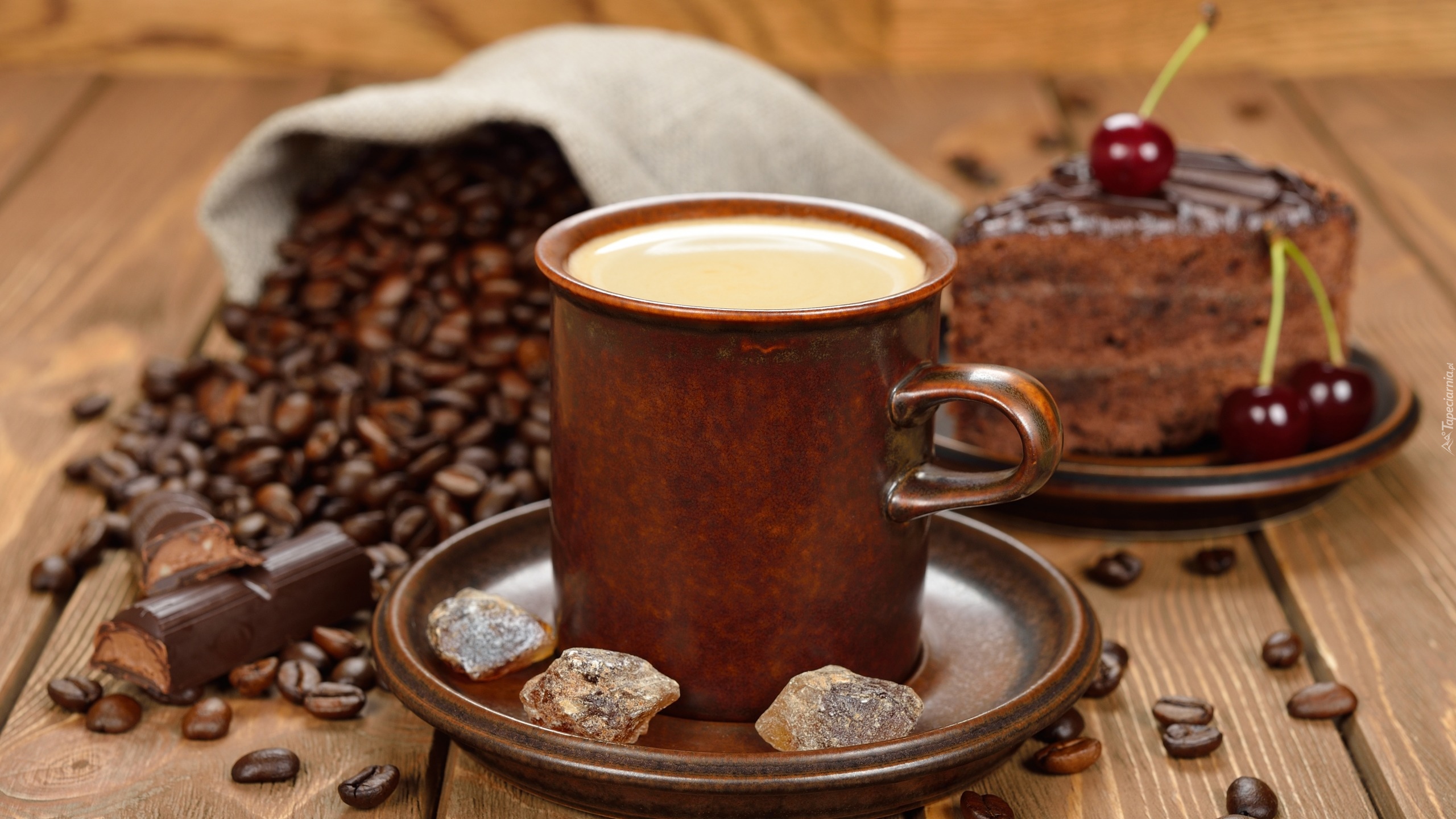 Edytor tapety: Brązowy cukier obok kubka kawy