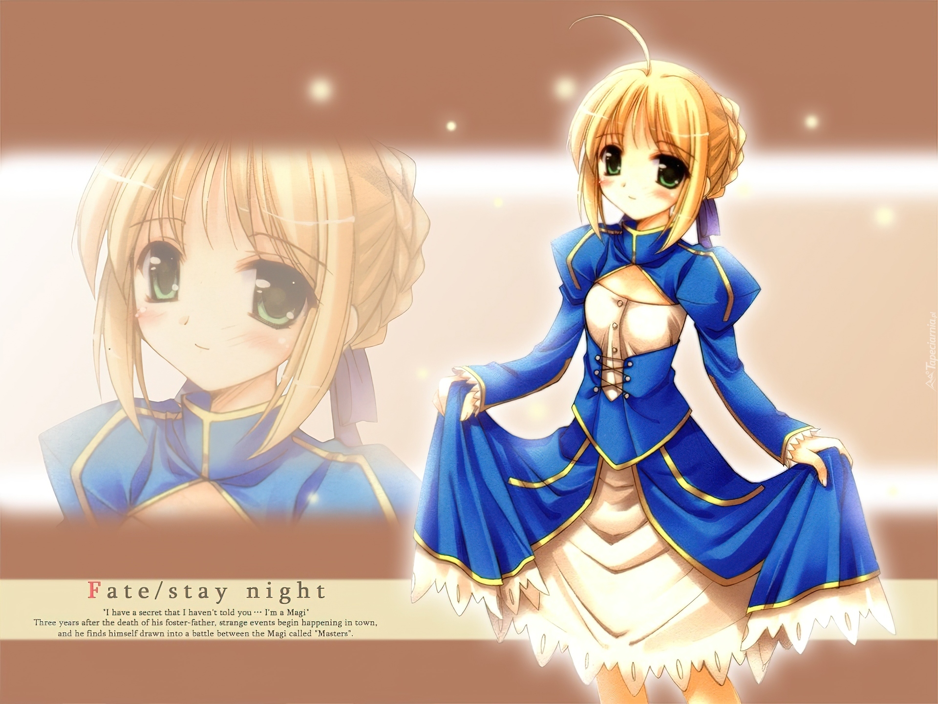 Edytor tapety: suknia, dziewczyna, napisy, twarz, Fate Stay Night