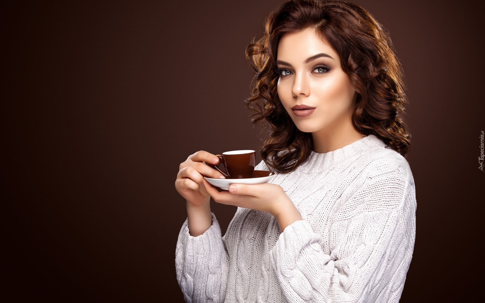 Edytor tapety: Kobieta z filiżanką kawy