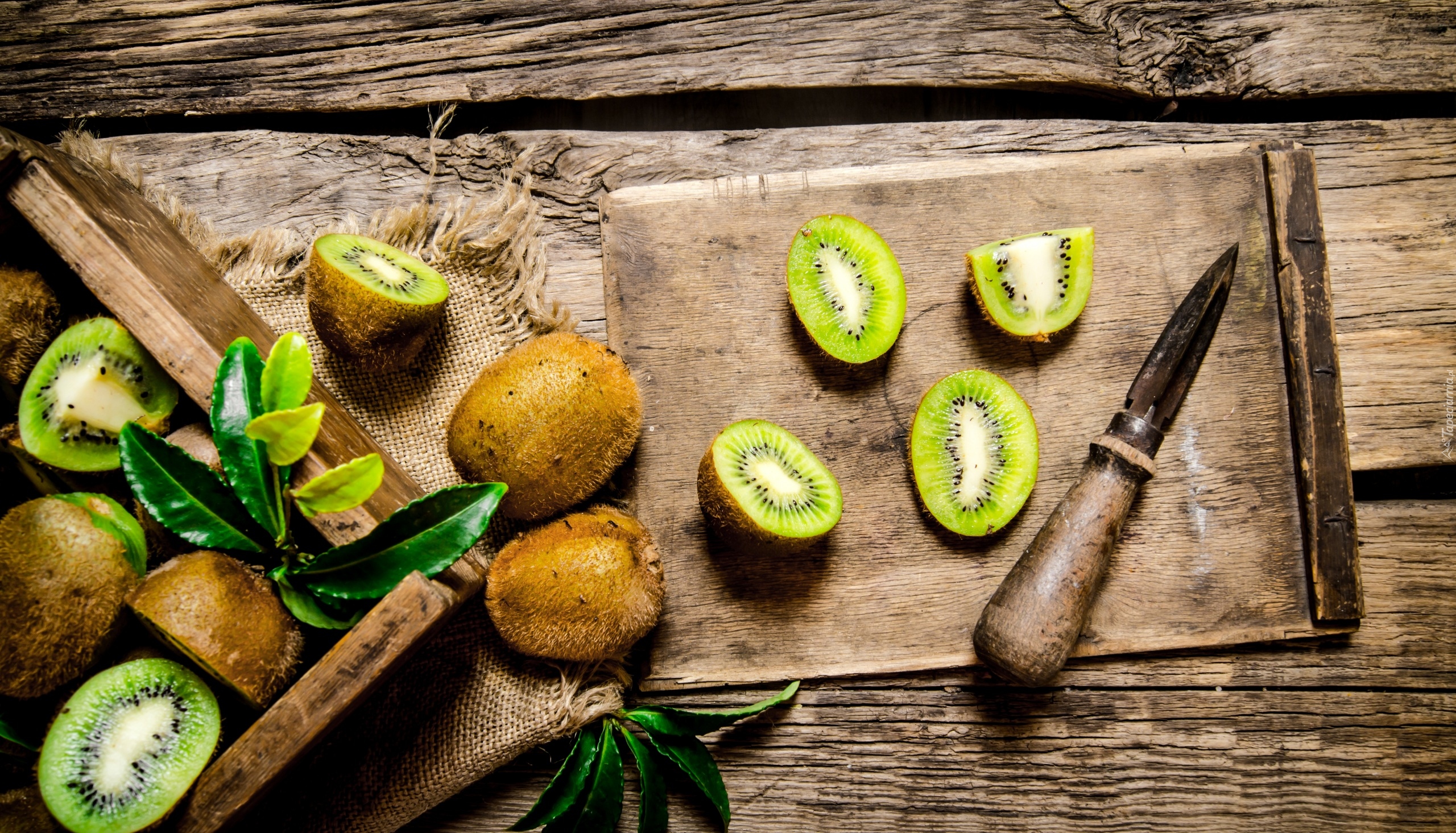 Edytor tapety: Owoce kiwi na deskach