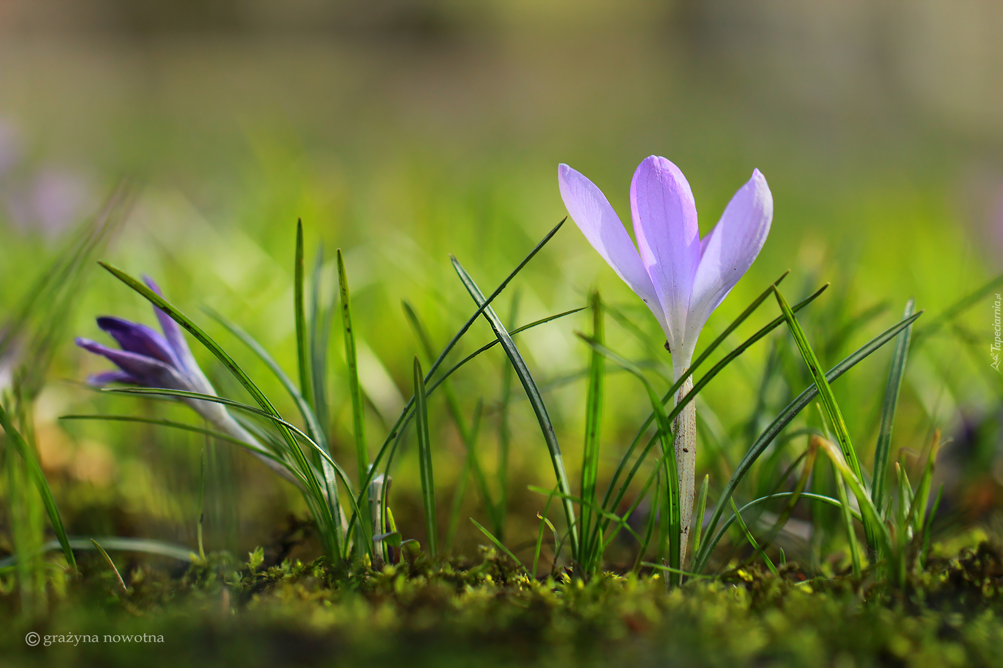 Edytor tapety: Liliowy krokusik w trawie
