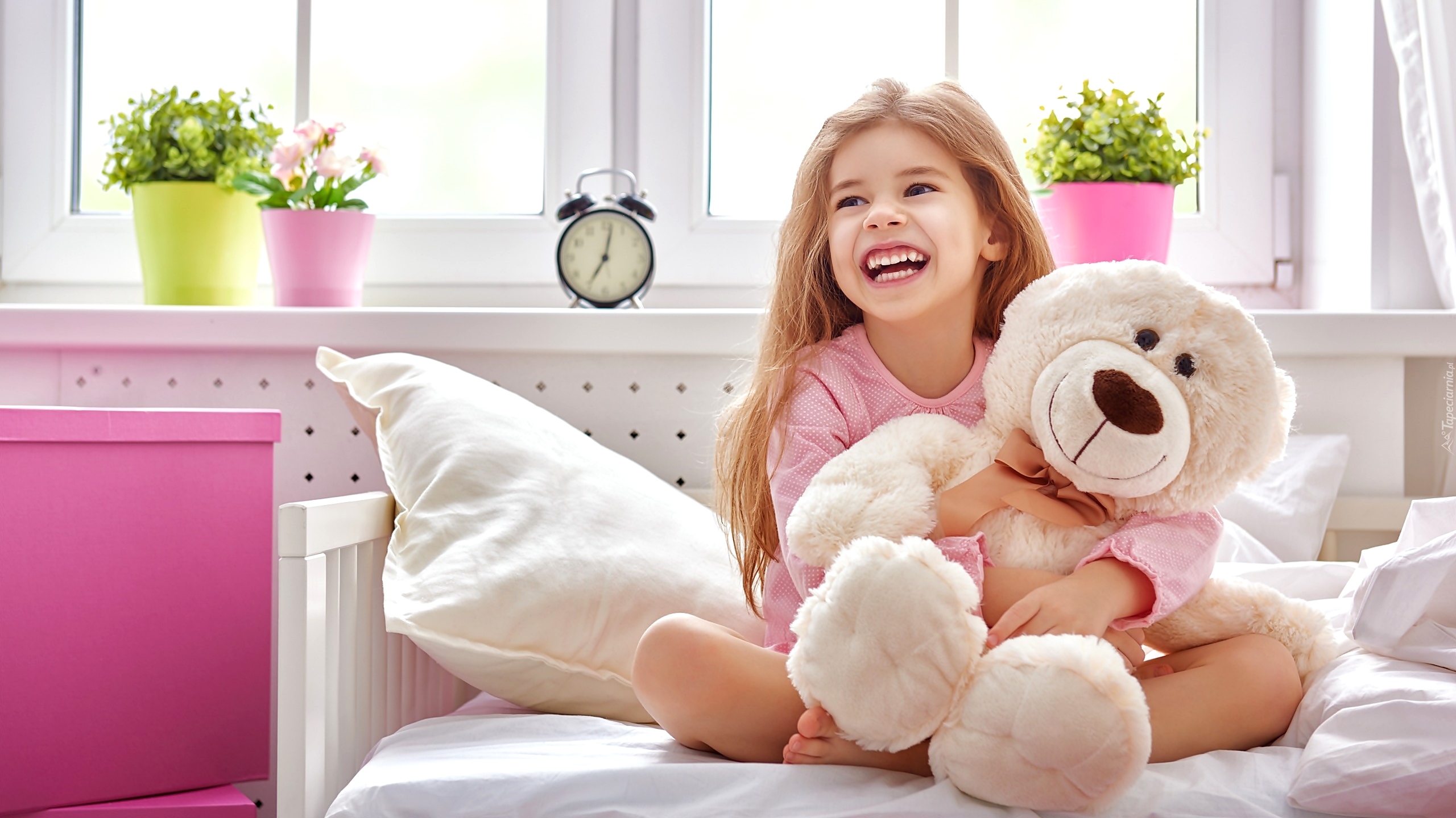 Edytor tapety: Radosna dziewczynka z pluszowym misiem