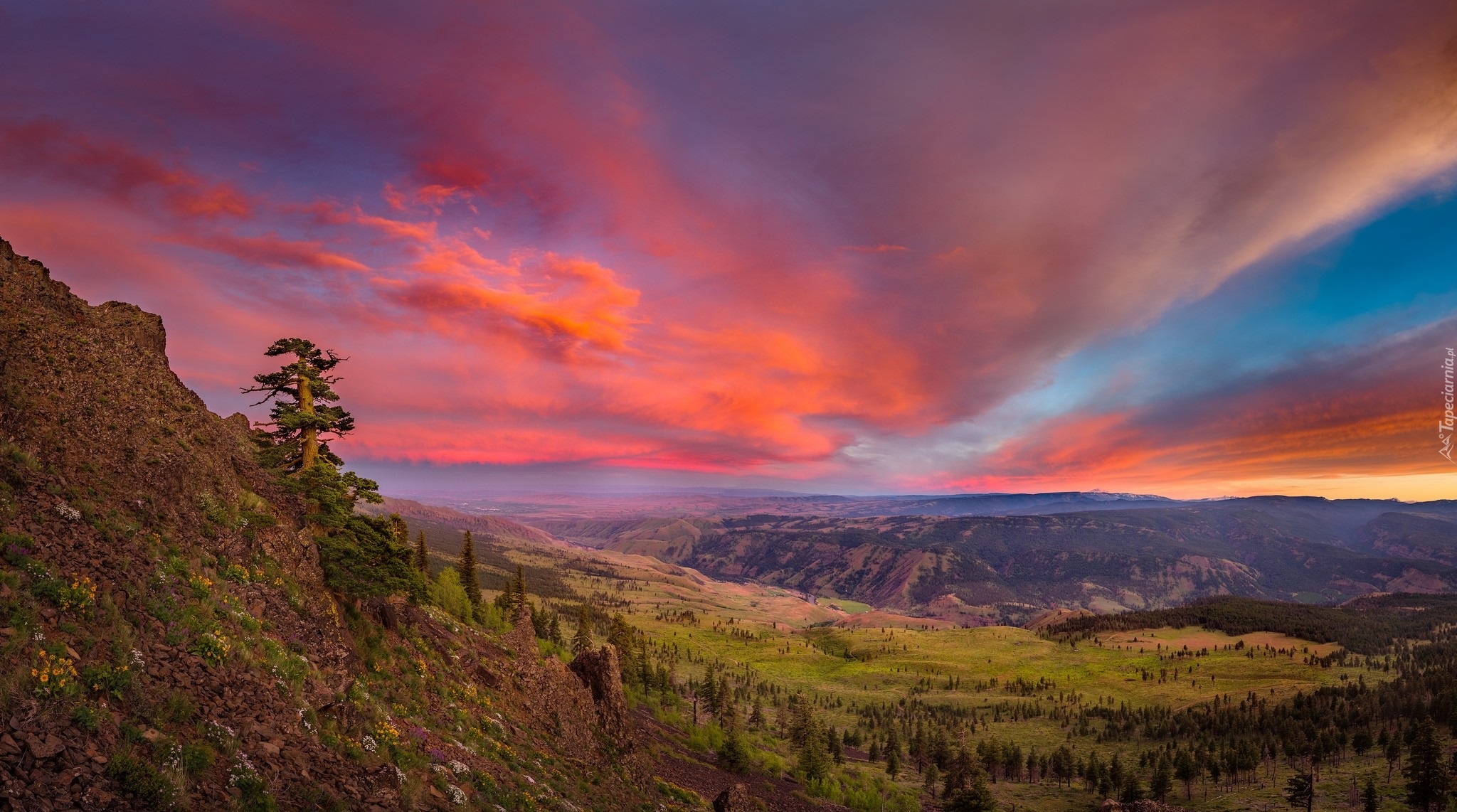 Edytor tapety: Czerwone niebo nad wzgórzami